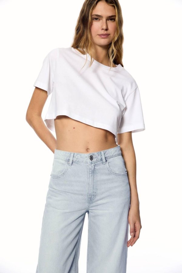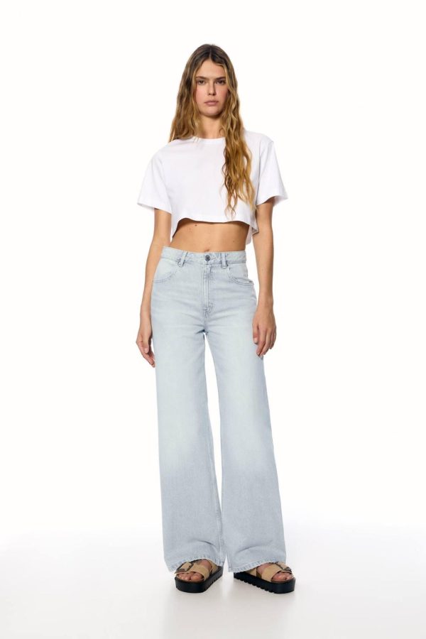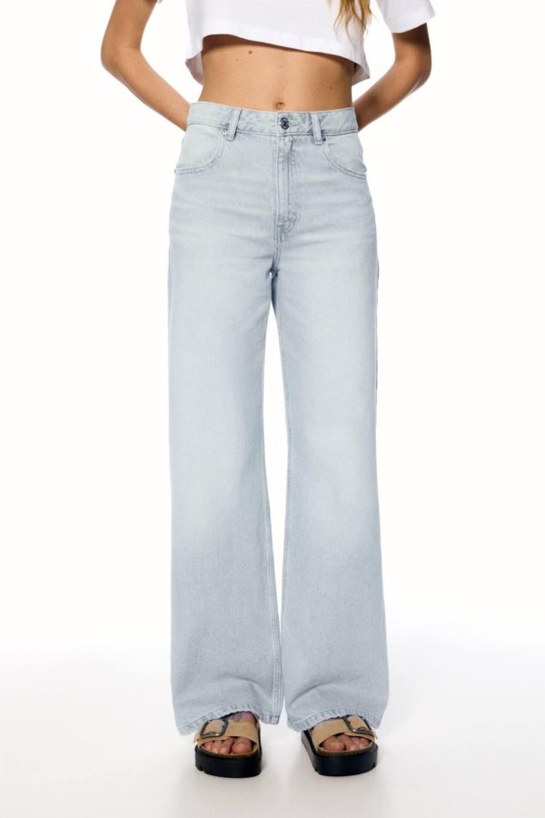 High-Rise Wide-Leg Jeans With Belt Loops, A Five-Pocket Design And Zipper Fly And Button Fastening, Made Of Cotton Fabric. Inseam Length: 83 Cm.