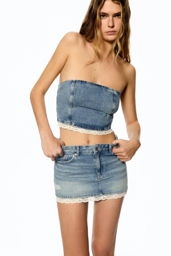 Be the first to review “Lace-Trimmed Denim Mini Skirt Medium Blue | Women Mini”