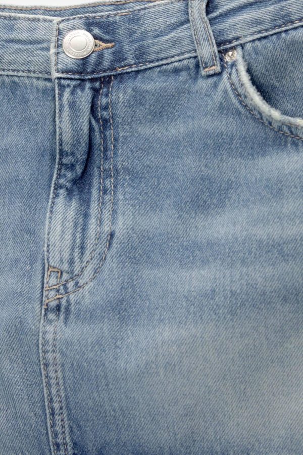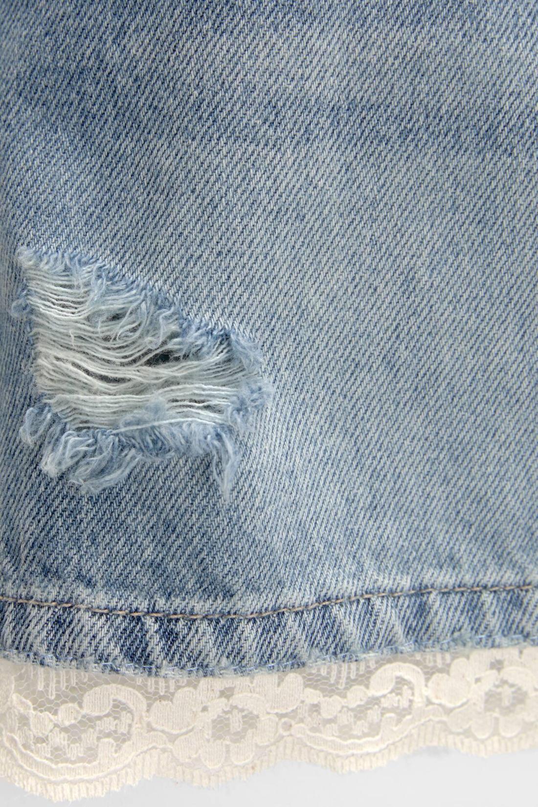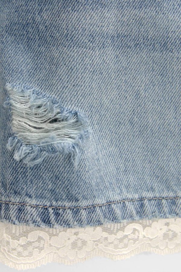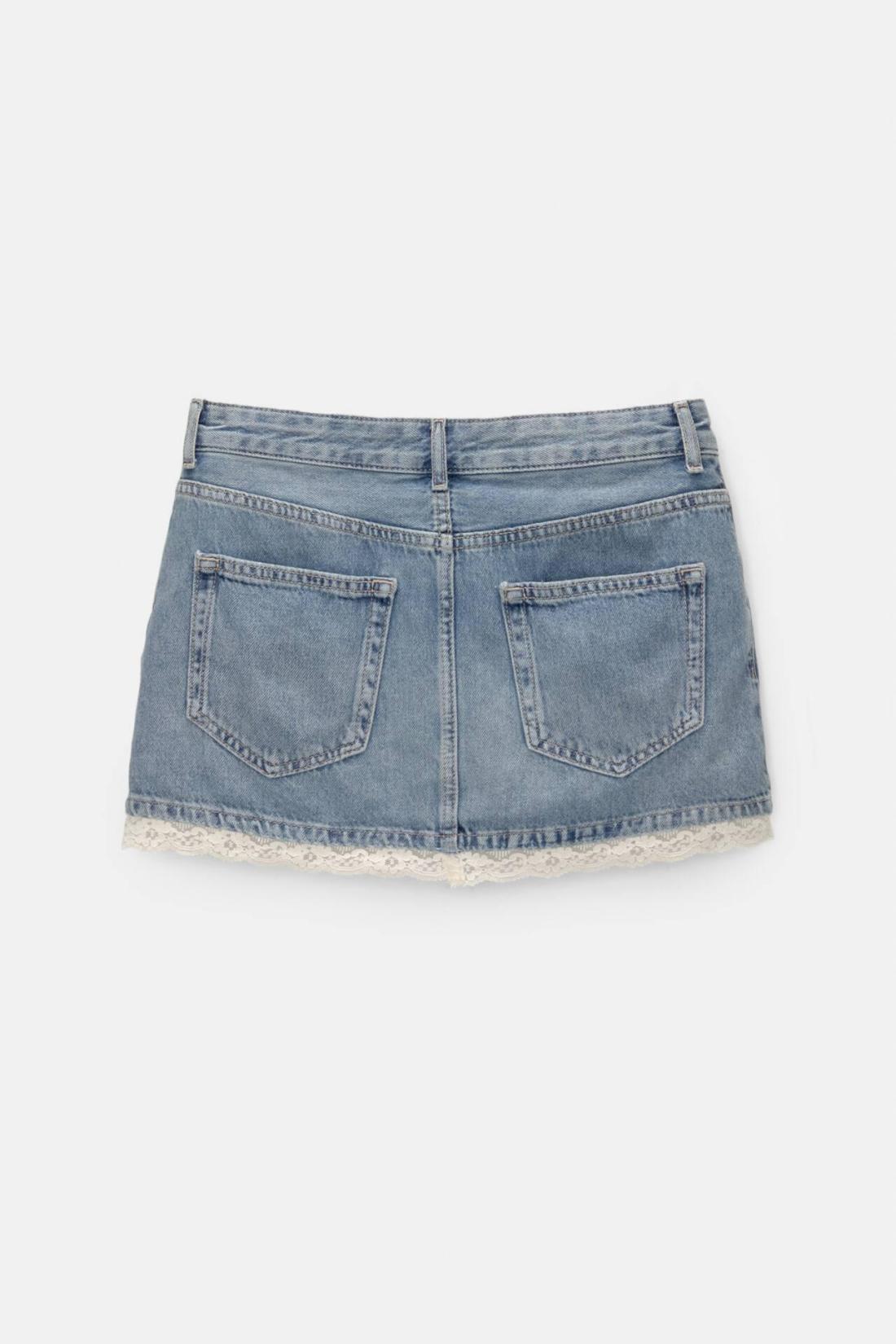 Denim Mini Skirt With Lace Detail On The Hem, A Five-Pocket Design, Belt Loops And Zipper Fly And Top Button Fastening. Made Of Cotton. Composición