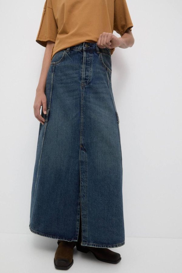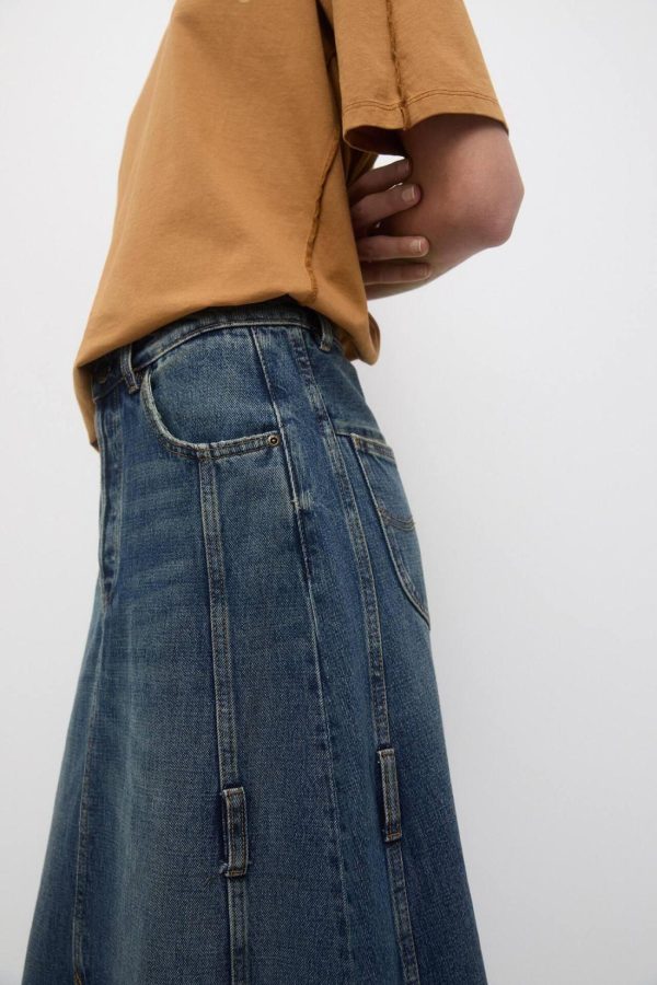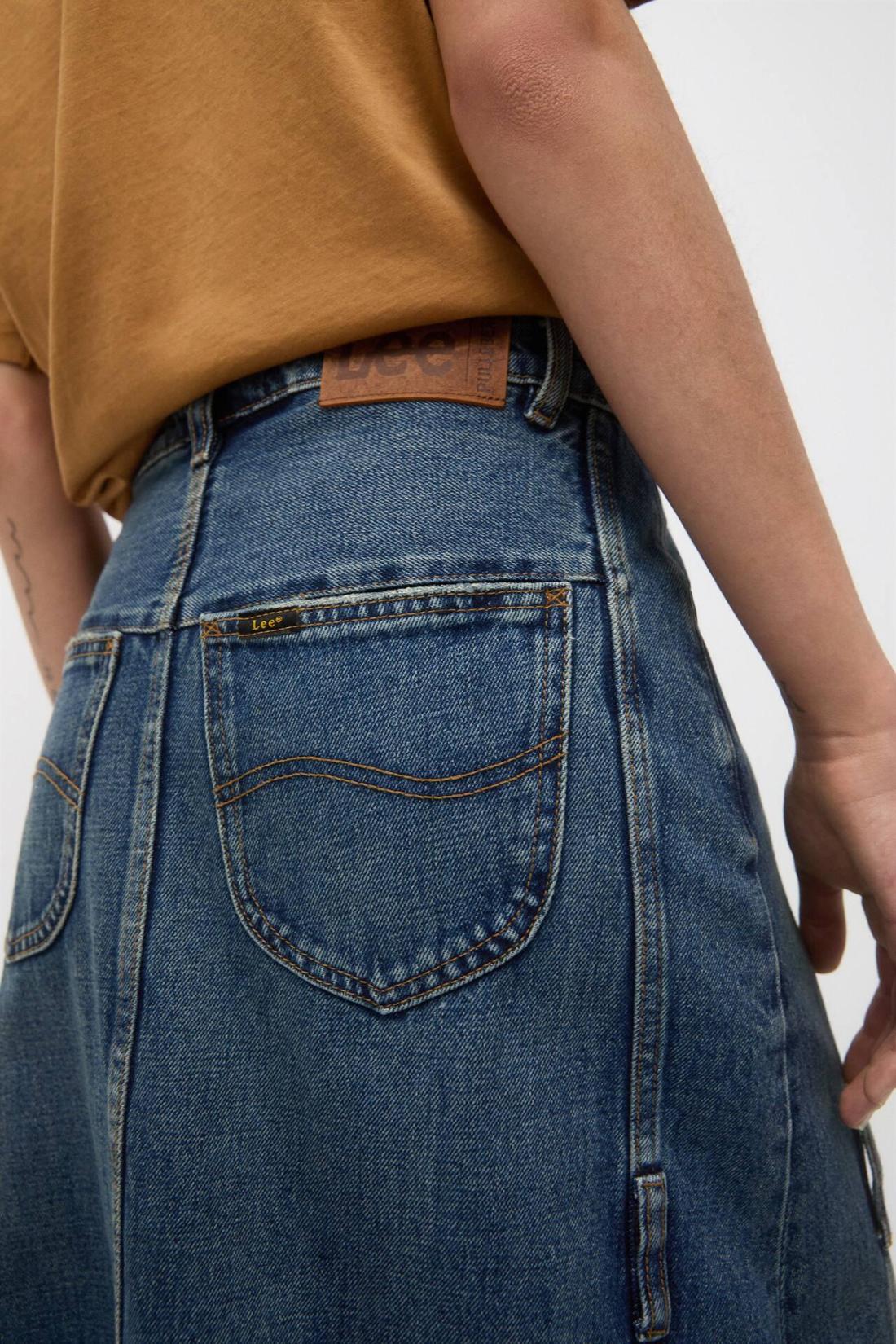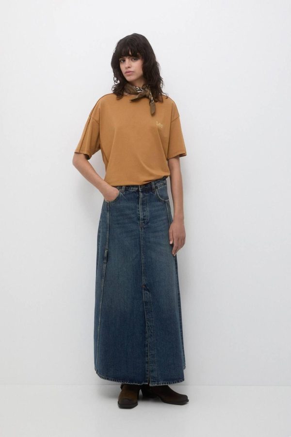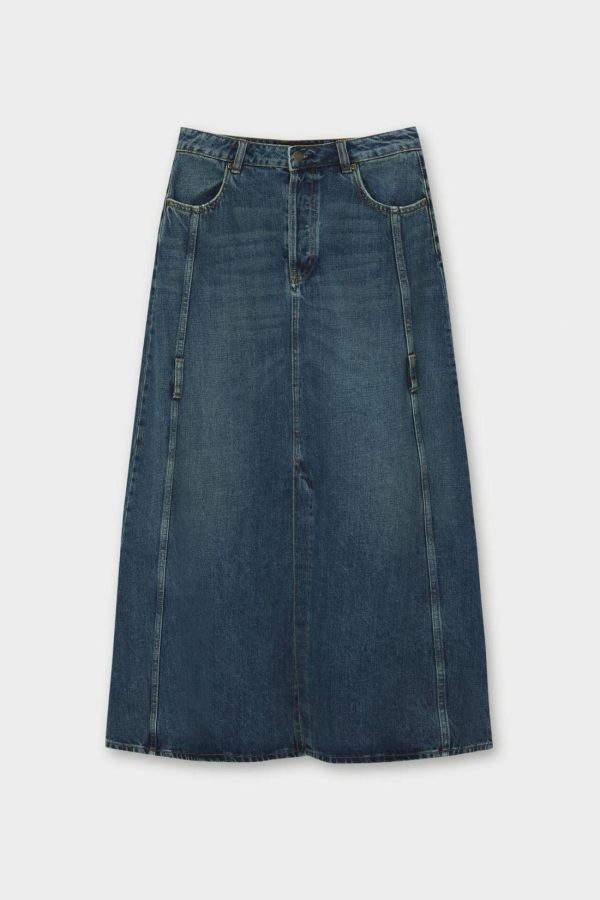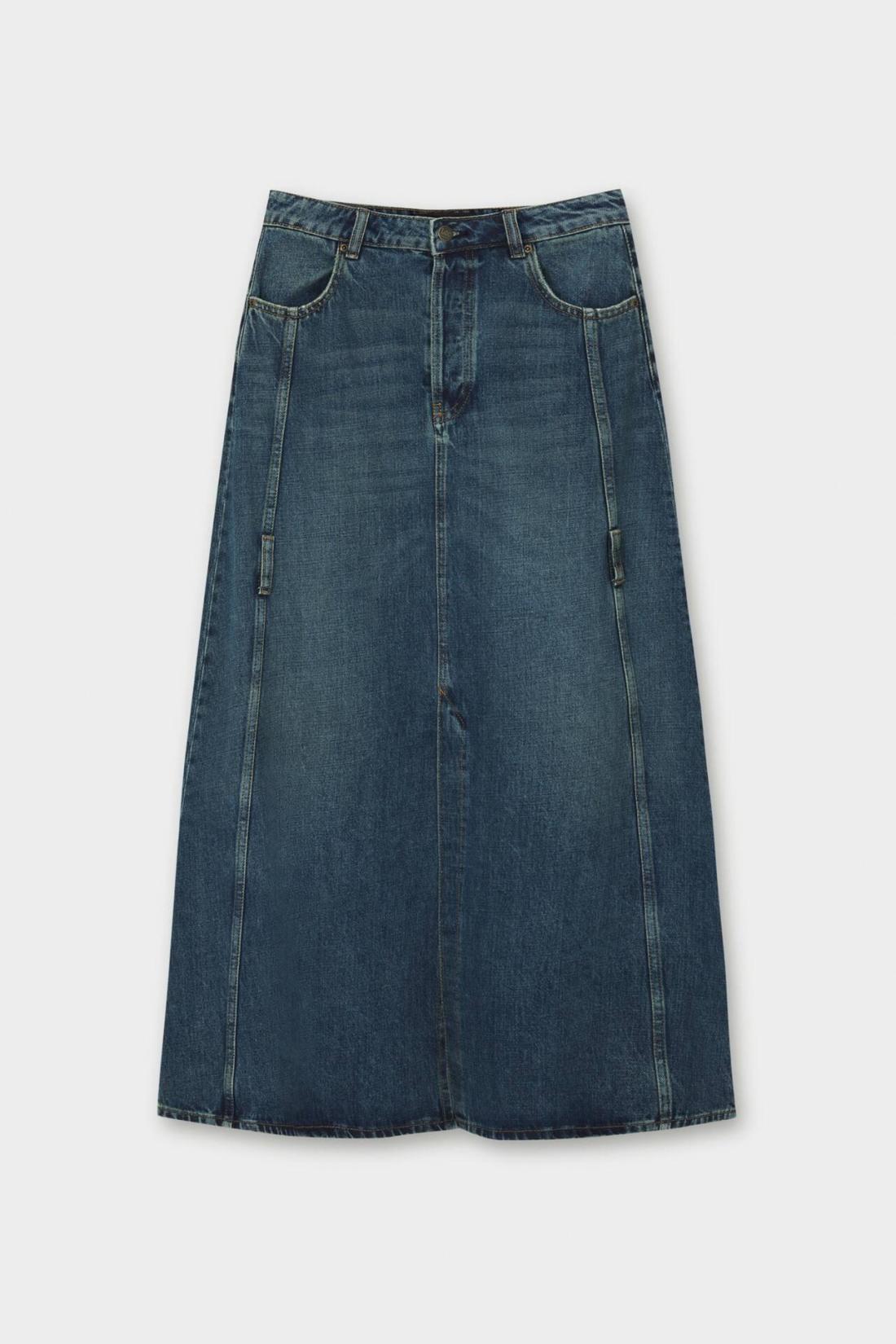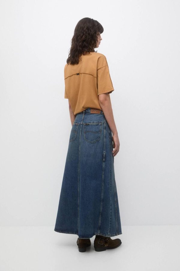 Long Denim Skirt With Seam Details, Belt Loops And Pockets. Lee X Pull&Amp;Bear Collaboration Composición