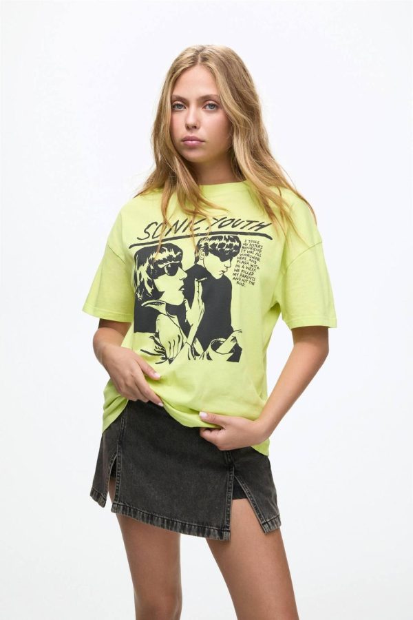 Lime Green Sonic Youth License T-Shirt With Short Sleeves And A Round Neckline. Made Of Faded-Effect Cotton.