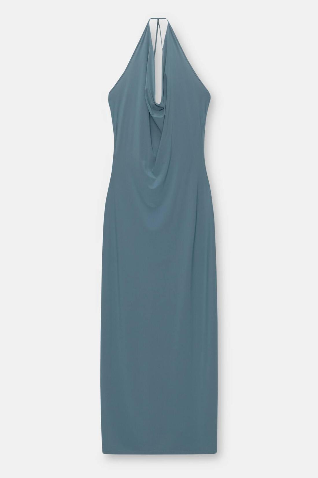 Long Fitted Halter Dress With Draped Detail And An Open Back. Made Of Stretch Fabric. Composición