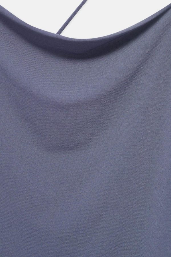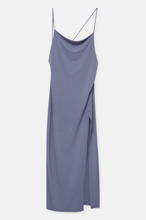 Long Asymmetric Dress With Thin Straps, Draped Detail, Slit And Open Back.