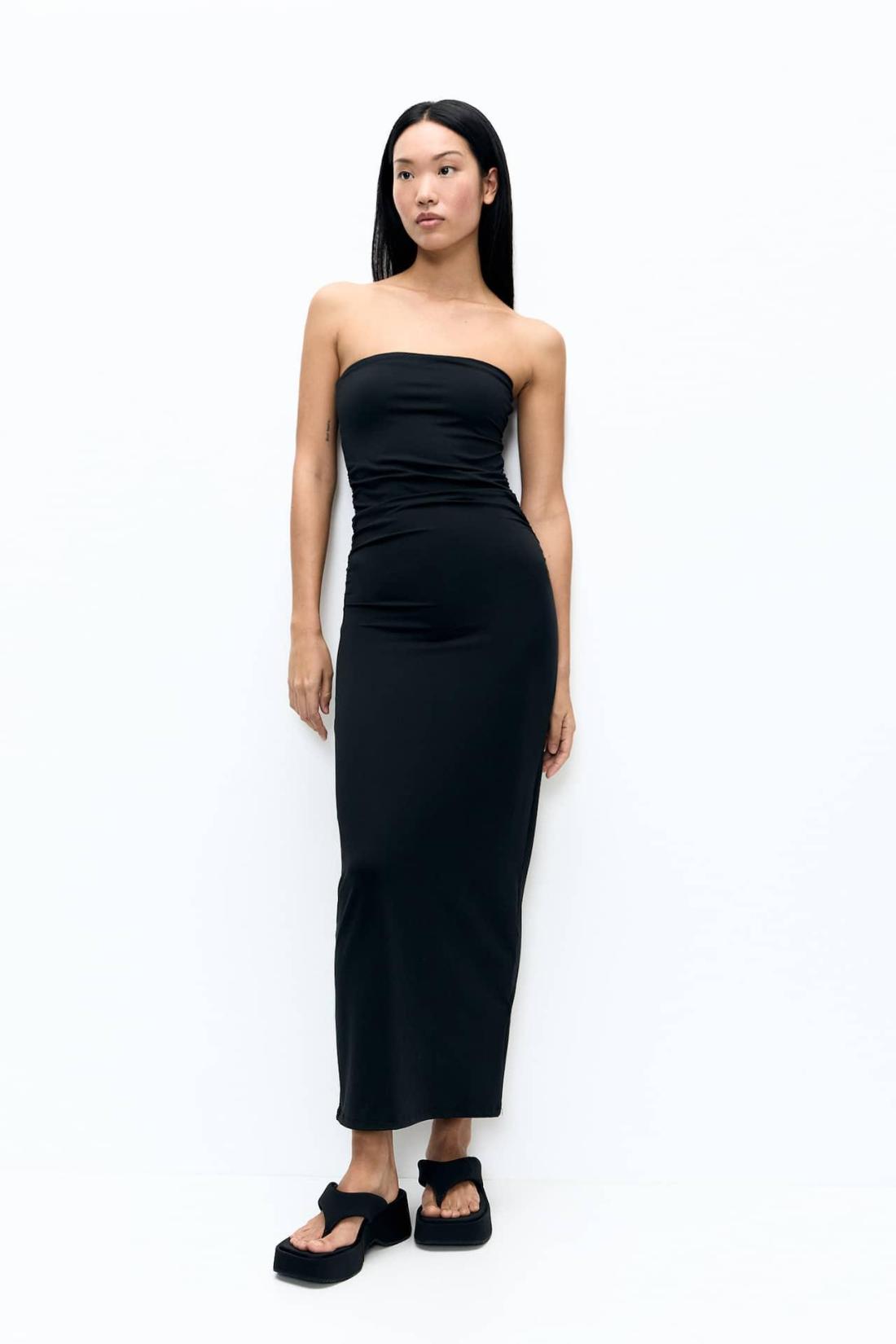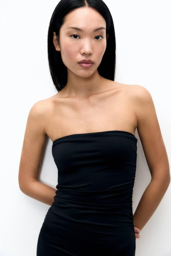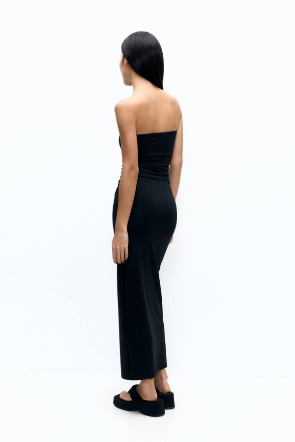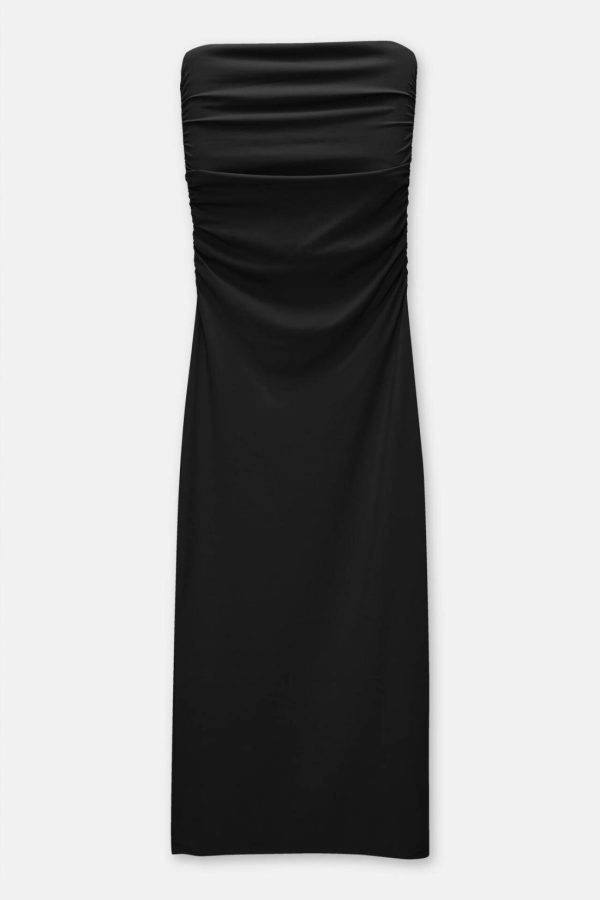 Long Dress With A Strapless Neckline And Side Gathered Details. Made Of Polyamide Fabric.