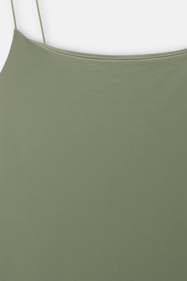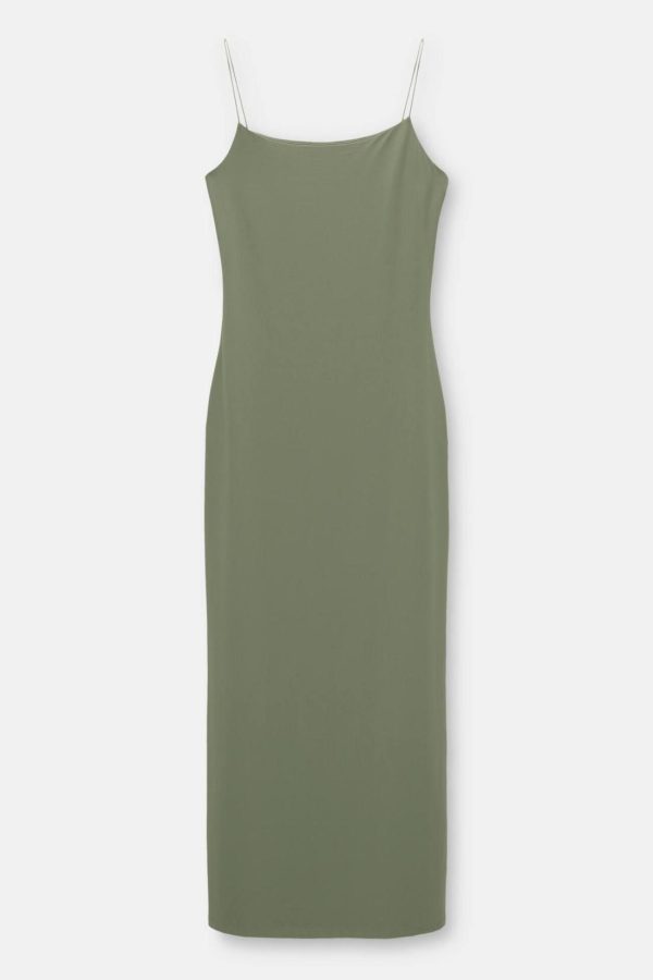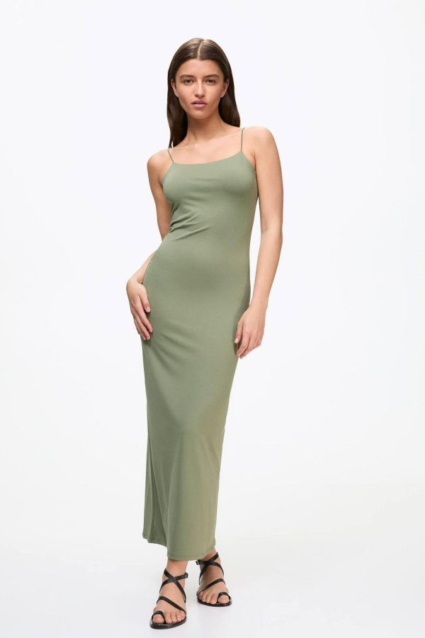 Long Fitted Dress With Thin Straps. Made Of Stretchy Polyamide Fabric.
