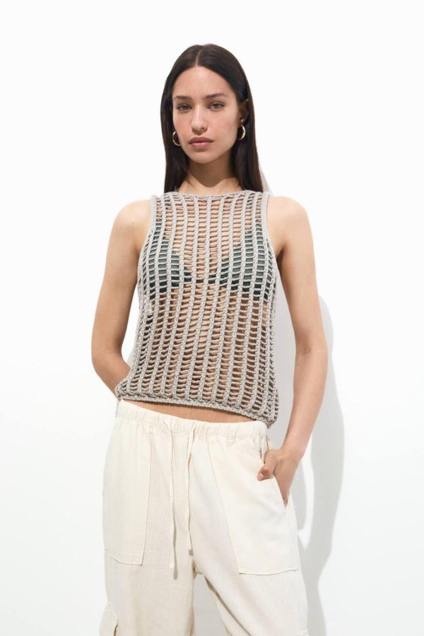 Crochet Knit Top With Open-Knit Detail. Made Of 100% Cotton.
