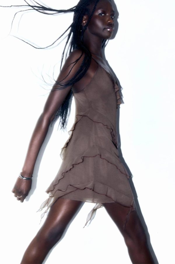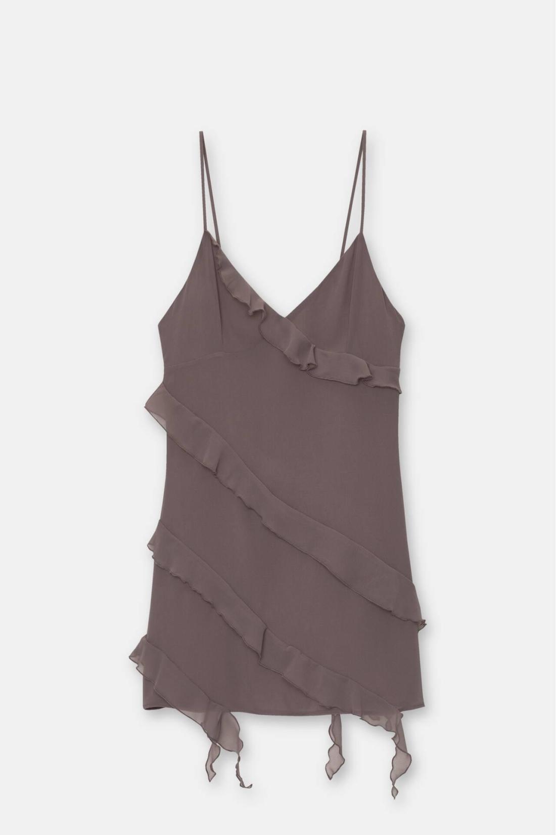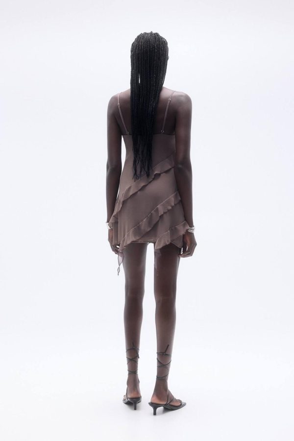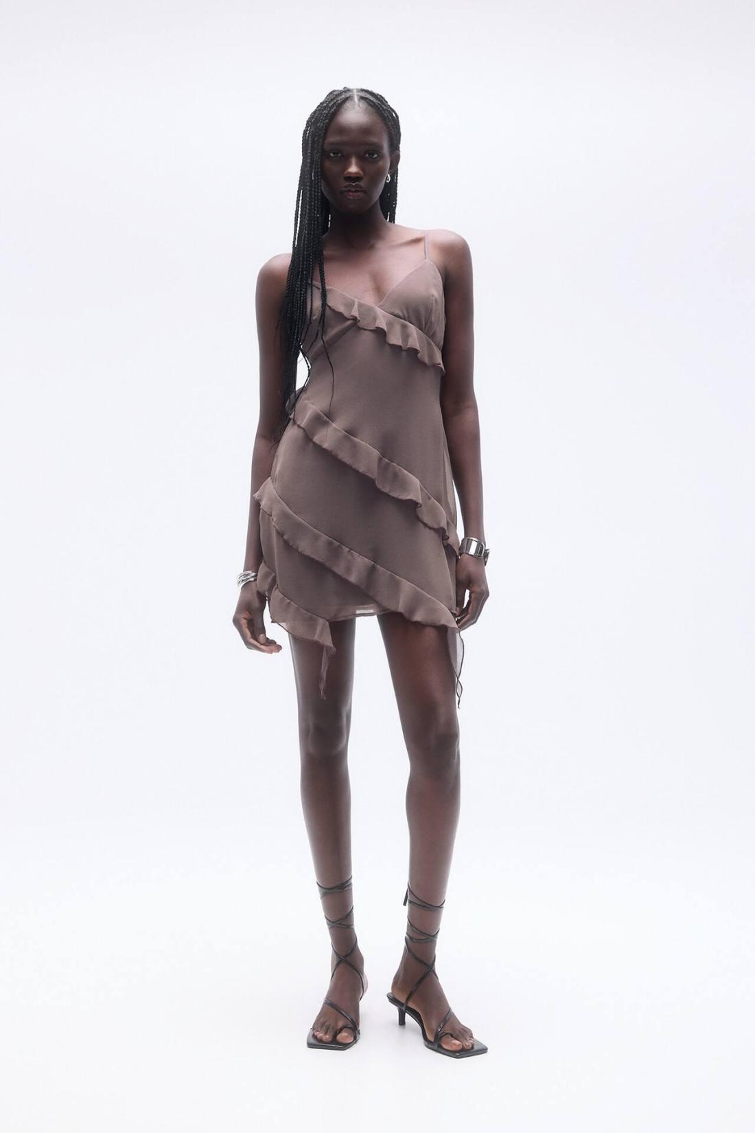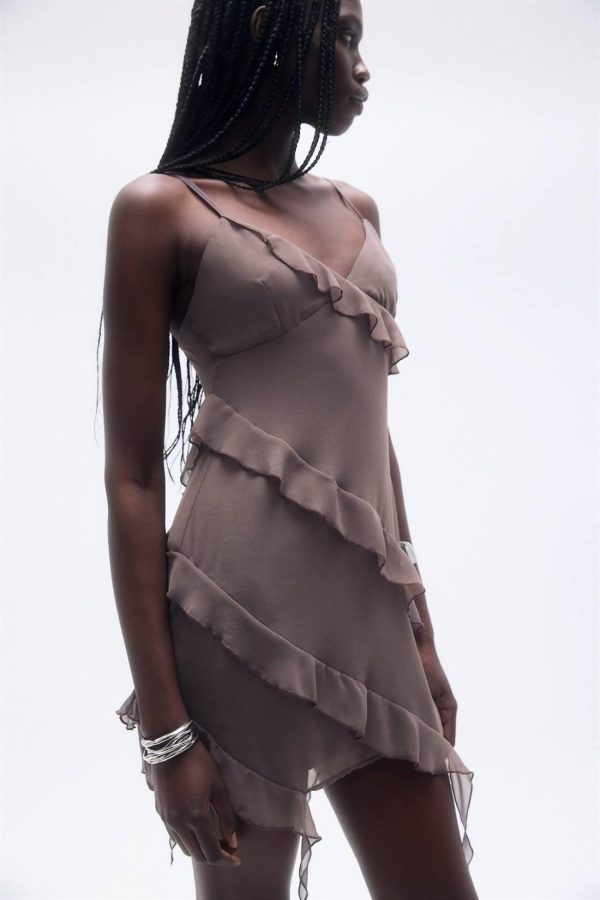 Strappy Mini Dress With Ruffles And An Animal Print.