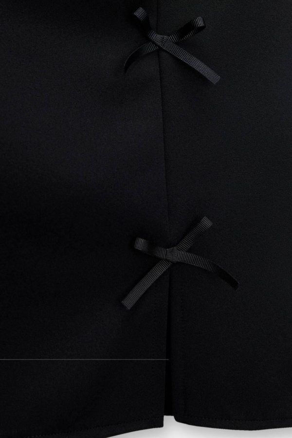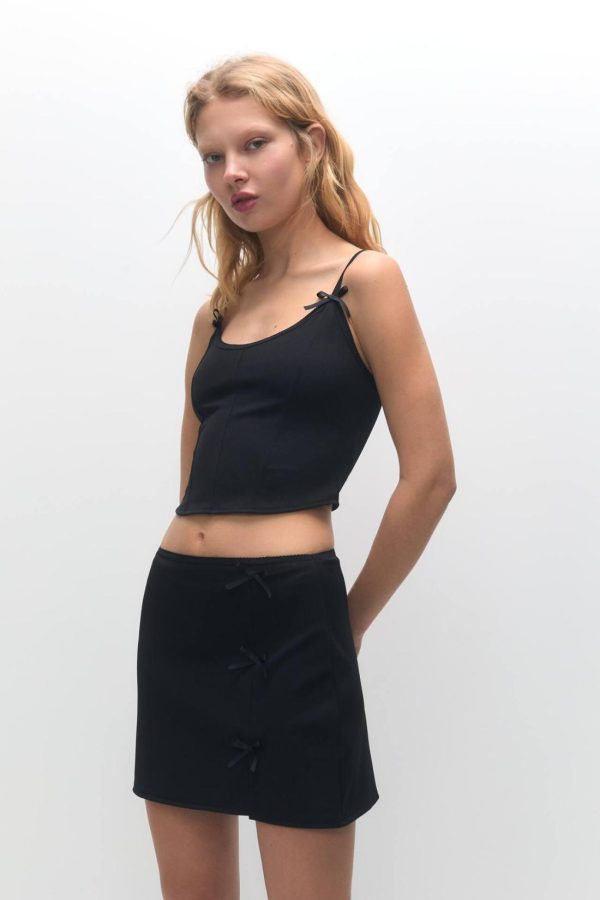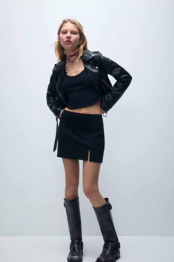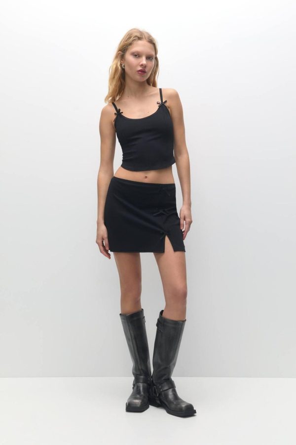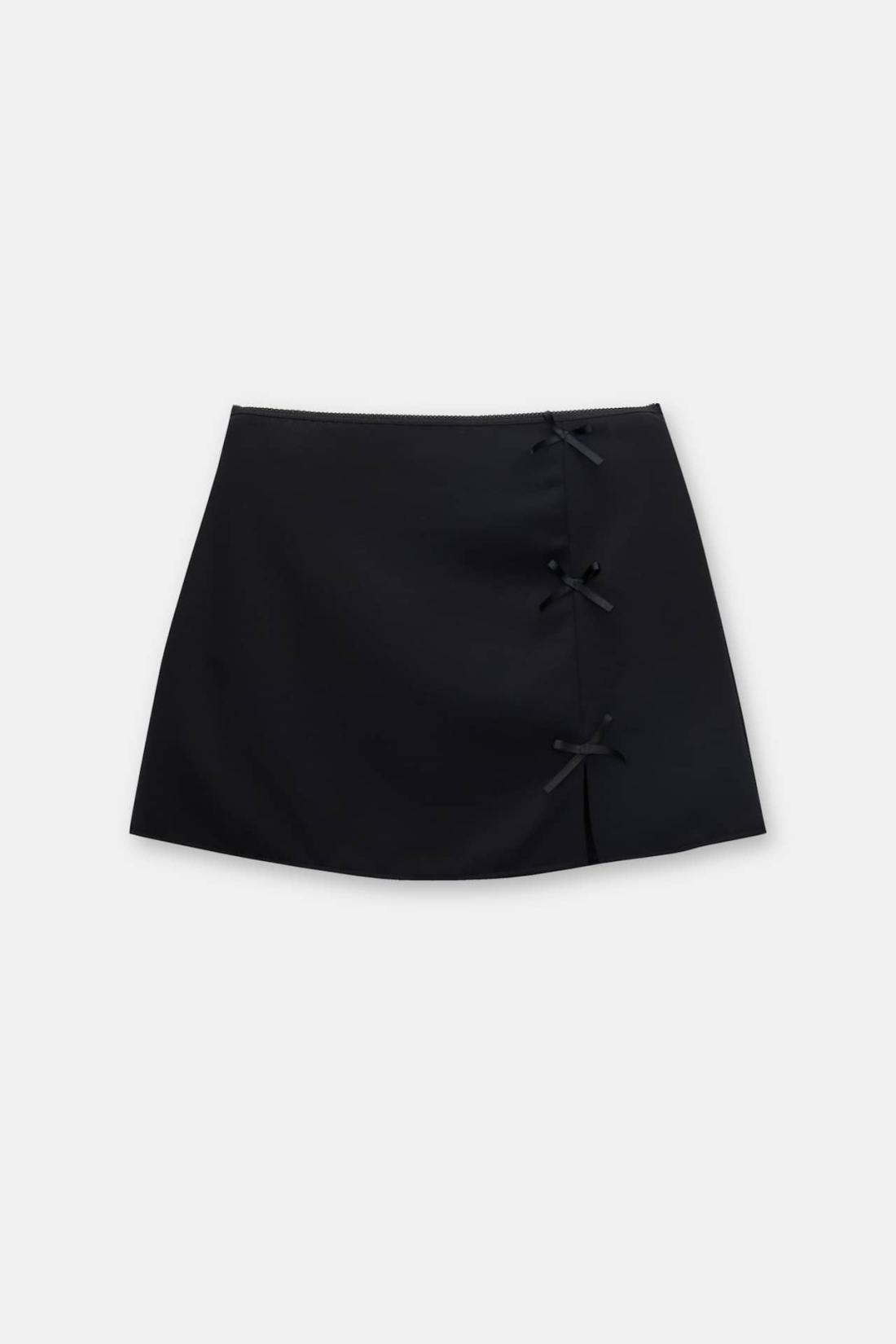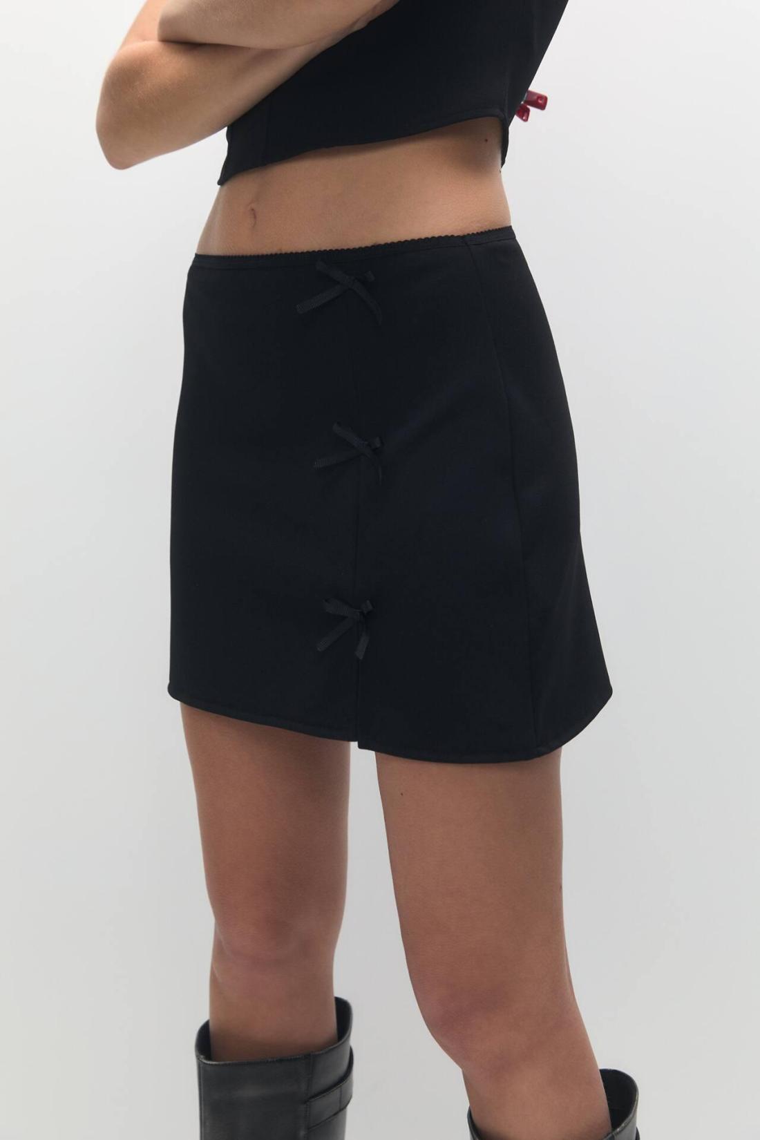 Mini Skirt With A Slit And Bow Details On One Side. Made Of Slightly Stretchy Fabric.