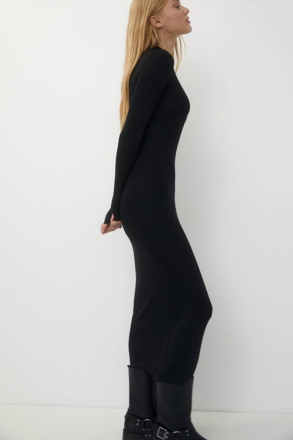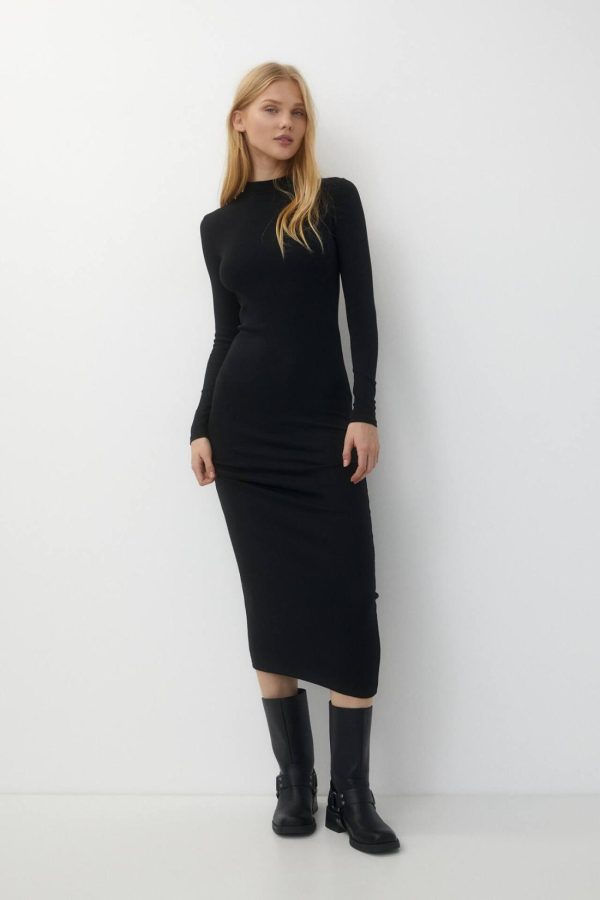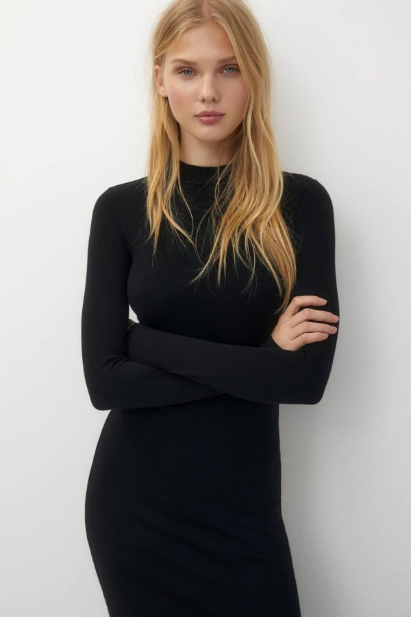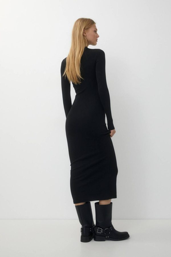 Fitted Midi Dress With A Mock Neck And Long Sleeves. Composición