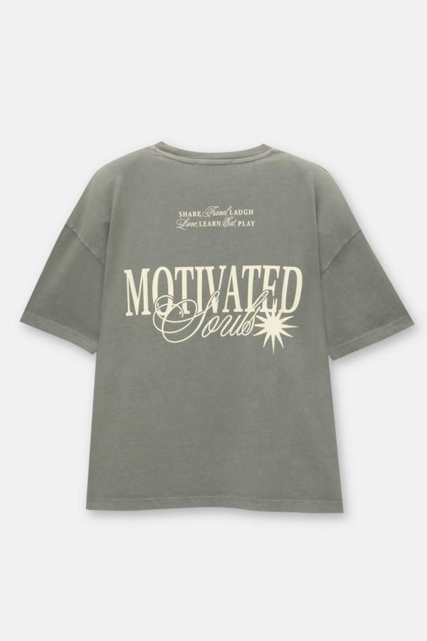 Short Sleeve T-Shirt With A “Motivated Souls” Slogan, A Print On The Chest And A Crew Neck. Made Of 100% Cotton.