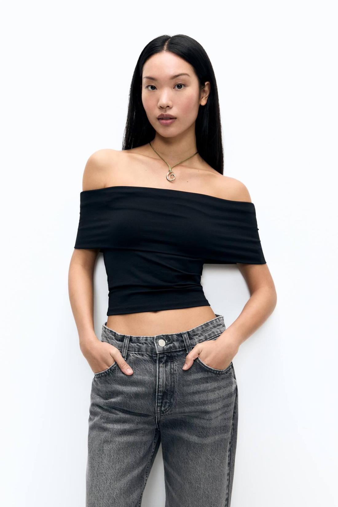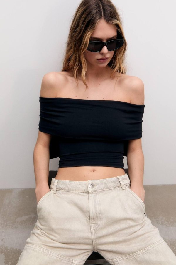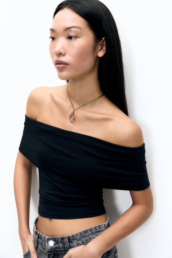 Off-The-Shoulder Polyamide Top Black | Women Off-The-Shoulder