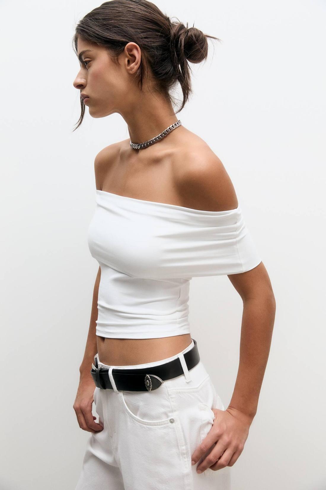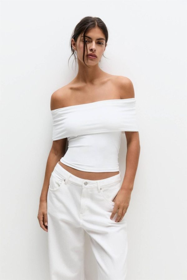 Off-The-Shoulder Polyamide Top White | Women Off-The-Shoulder