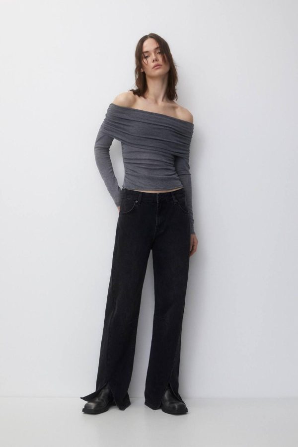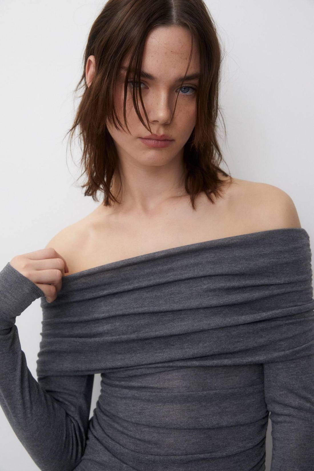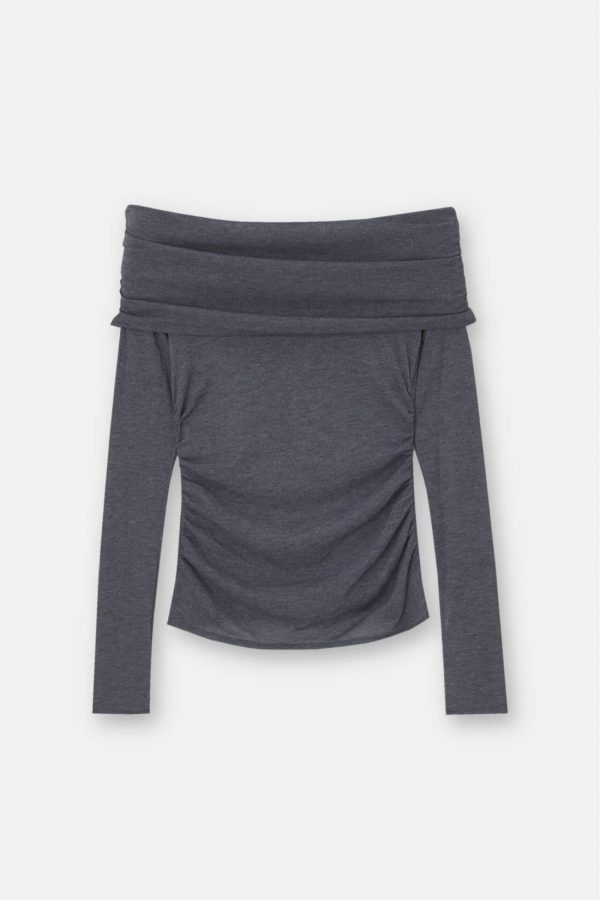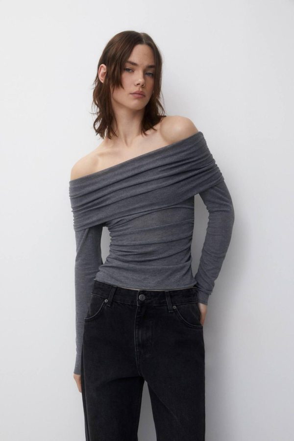 Off-The-Shoulder Top With Long Sleeves, A Draped Neckline And In Slightly Stretchy Fabric.