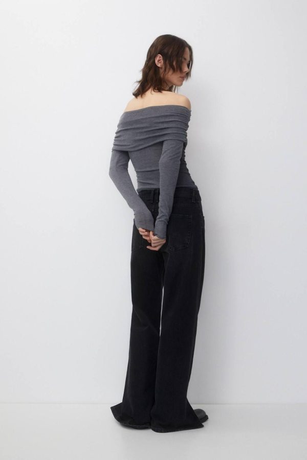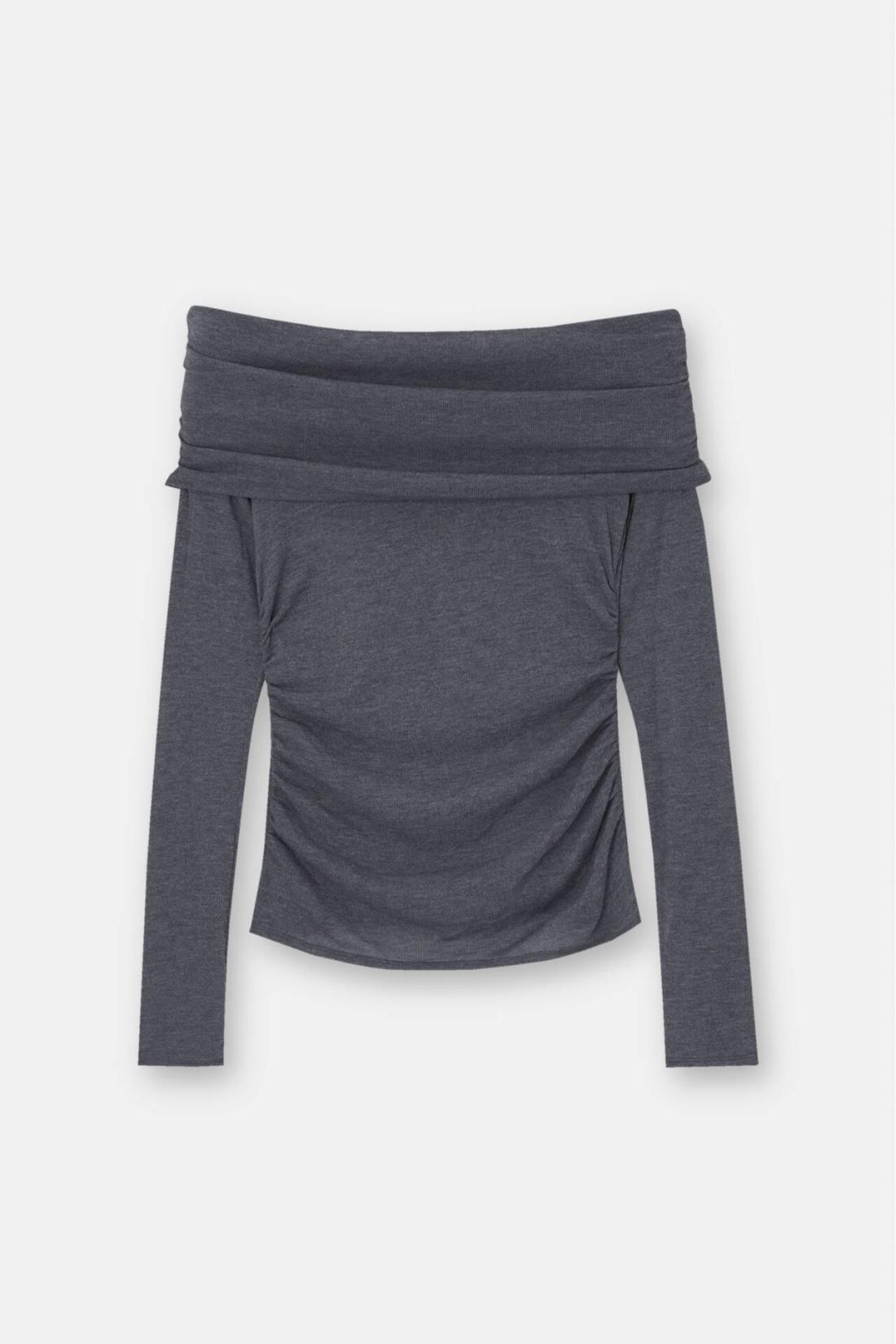 Off-The-Shoulder Top With Long Sleeves, A Draped Neckline And In Slightly Stretchy Fabric. Composición