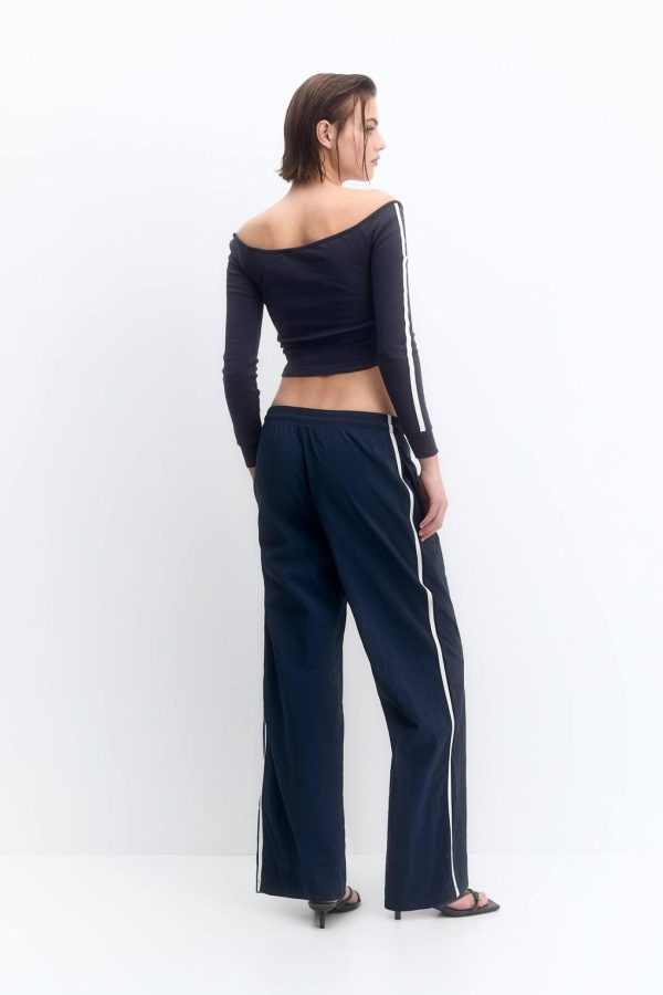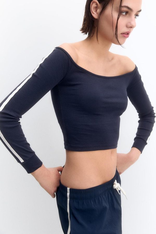 Off-The-Shoulder T-Shirt With Long Sleeves And Stripe Details.
