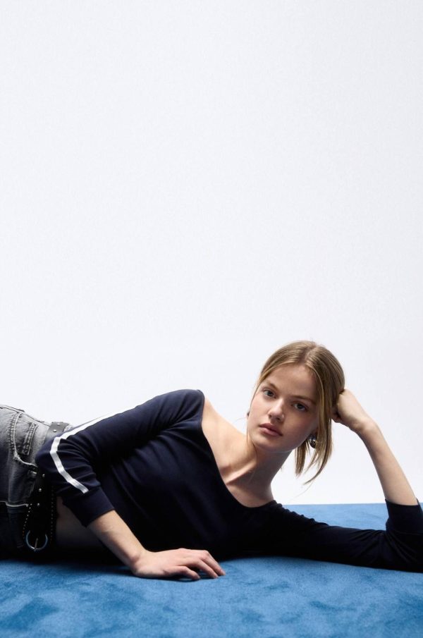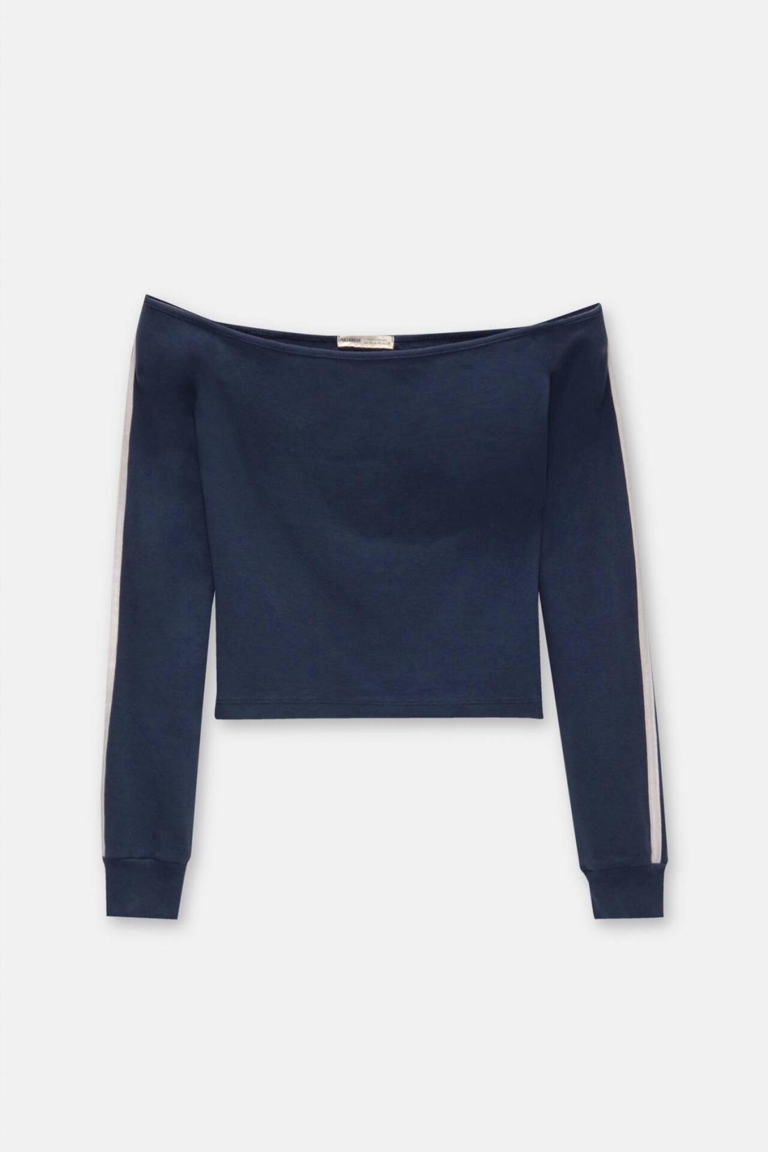 Off-The-Shoulder T-Shirt With Long Sleeves And Stripe Details. Composición