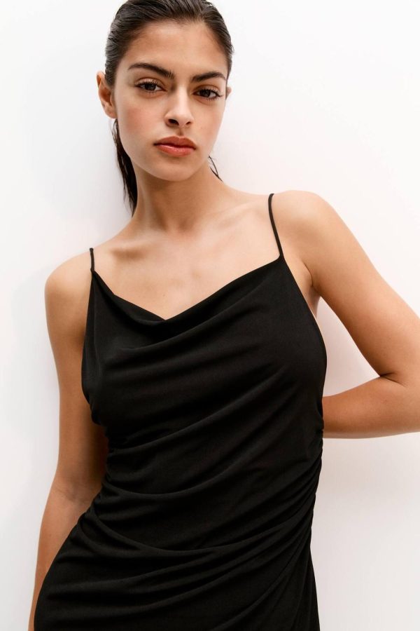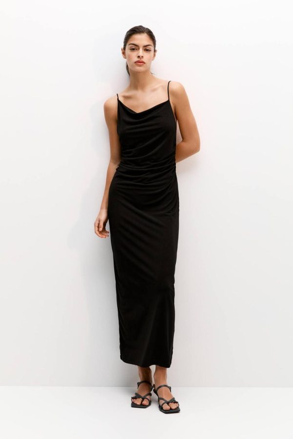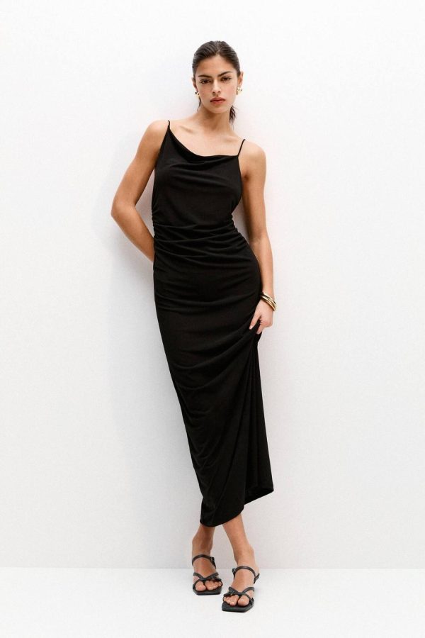 Midi Dress With An Open Draped Back. Made Of Stretch Fabric.