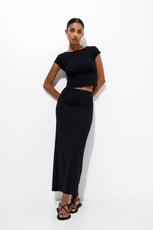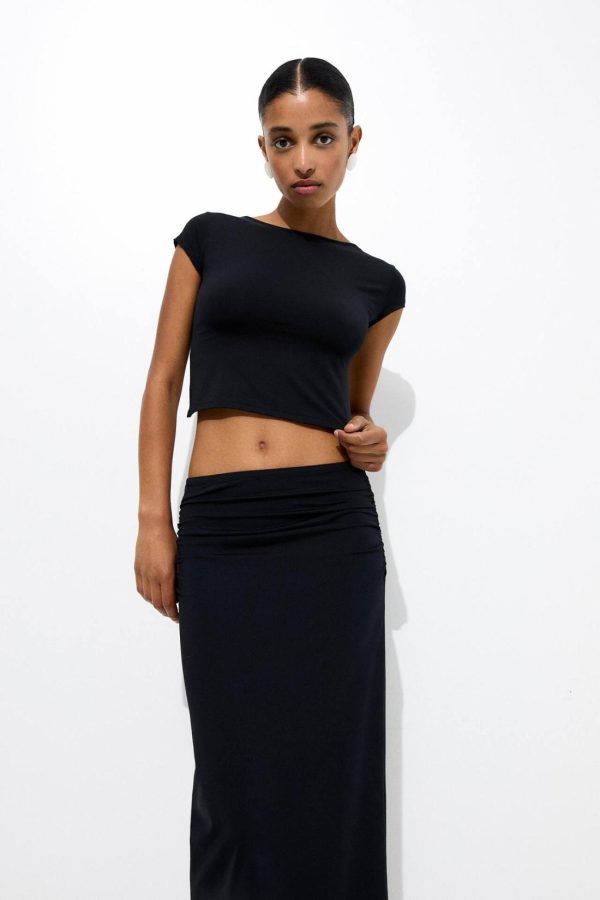 Short Sleeve Cropped T-Shirt With An Open Back. Made Of Slightly Stretchy Polyamide Fabric.