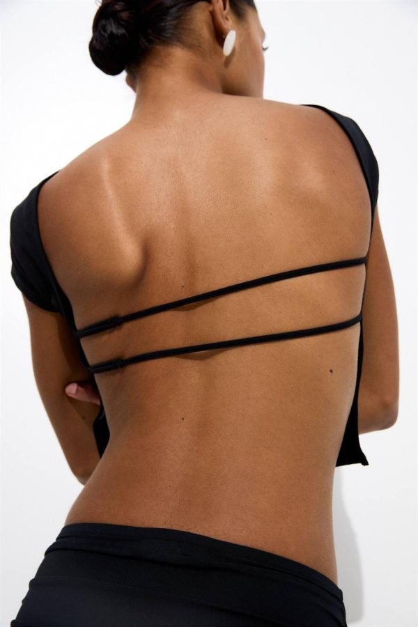 Be the first to review “Open Back Polyamide T-Shirt Black | Women Party”