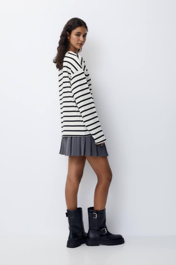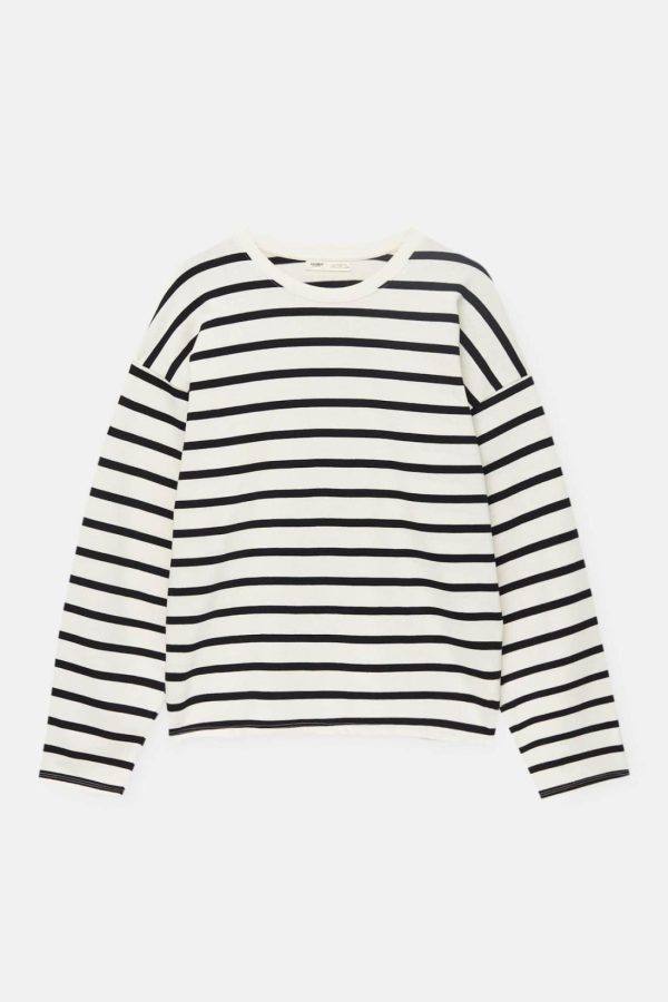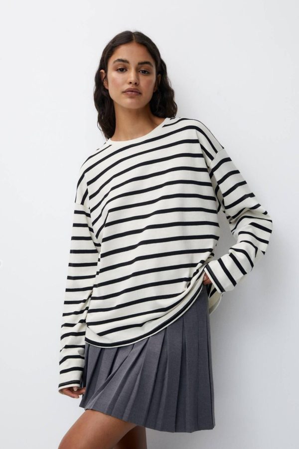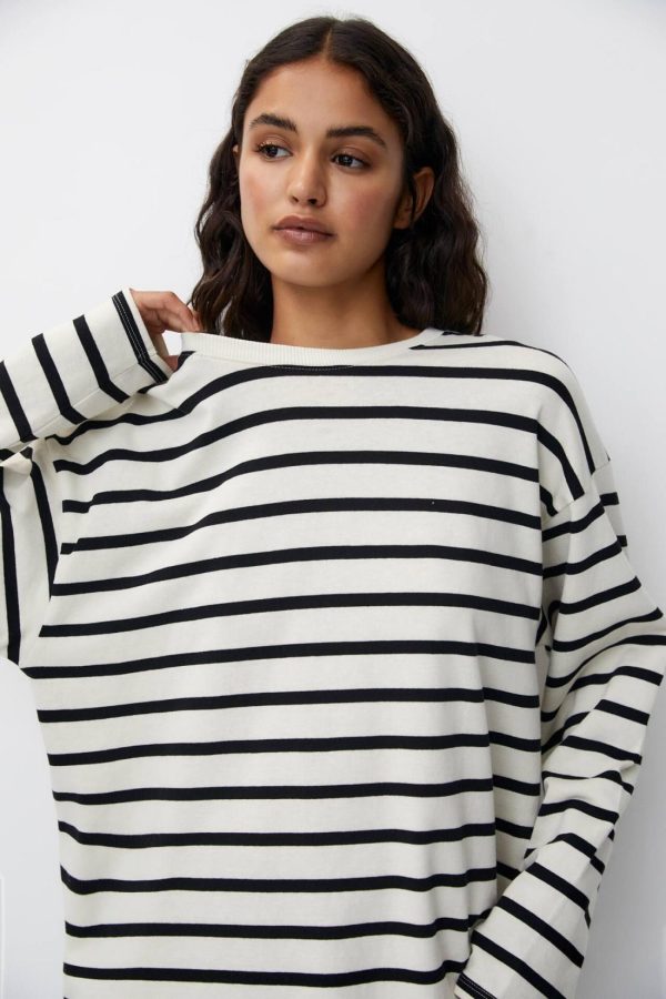 Oversize Striped T-Shirt Black/ecru | Women Long Sleeve
