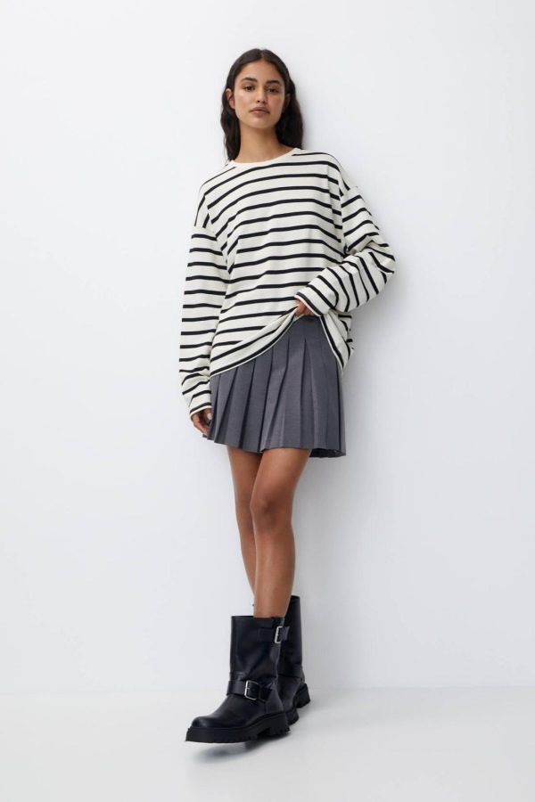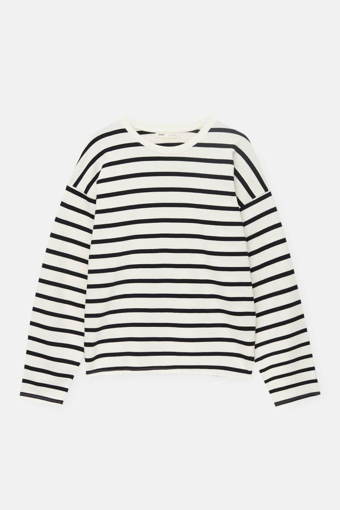 Oversize Long Sleeve T-Shirt With A Striped Design And Crew Neck. Made Of Cotton. Composición