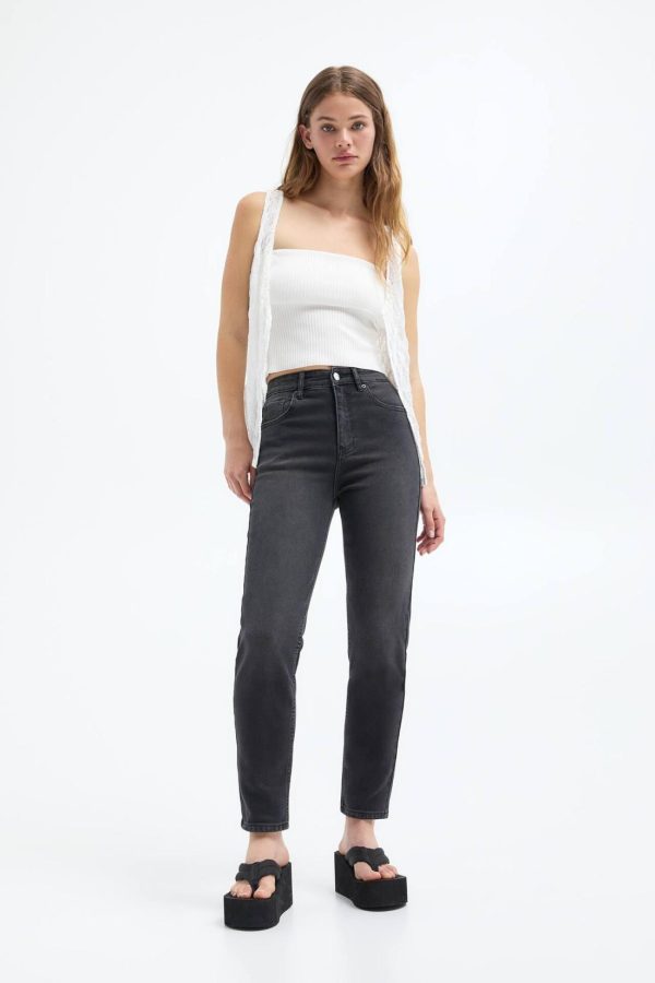 Waist: High Rise Fabric: Stretchy High-Waist , Mom Jeans With A Five-Pocket Design, Belt Loops, And Zipper Fly And Top Button Fastening. Inseam Length…