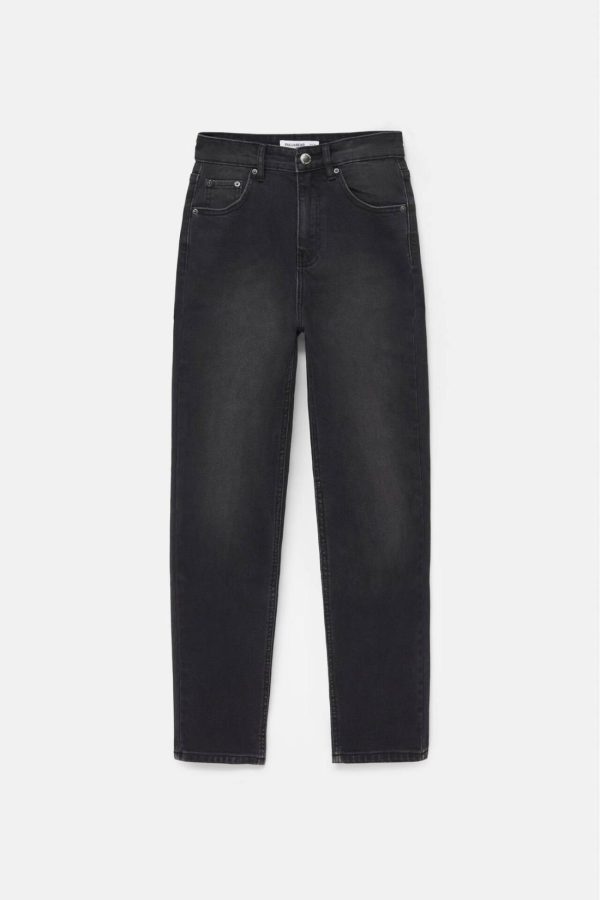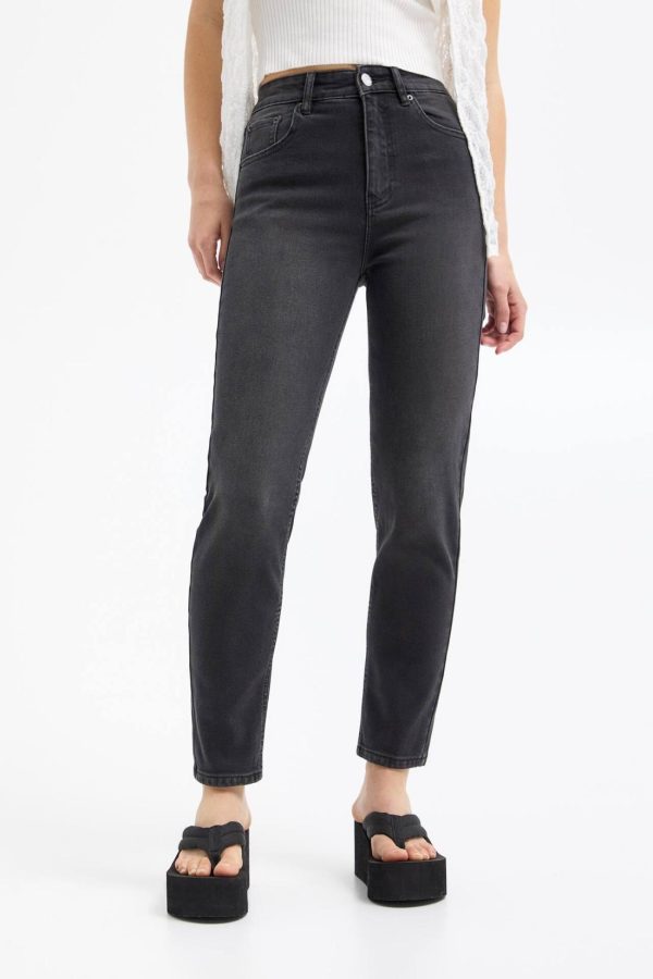 High-Waist , Mom Jeans With A Five-Pocket Design, Belt Loops, And Zipper Fly And Top Button Fastening. Inseam Length: 70.20 Cm.