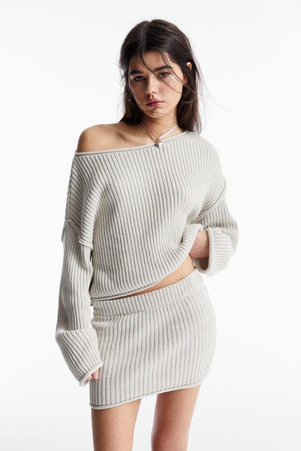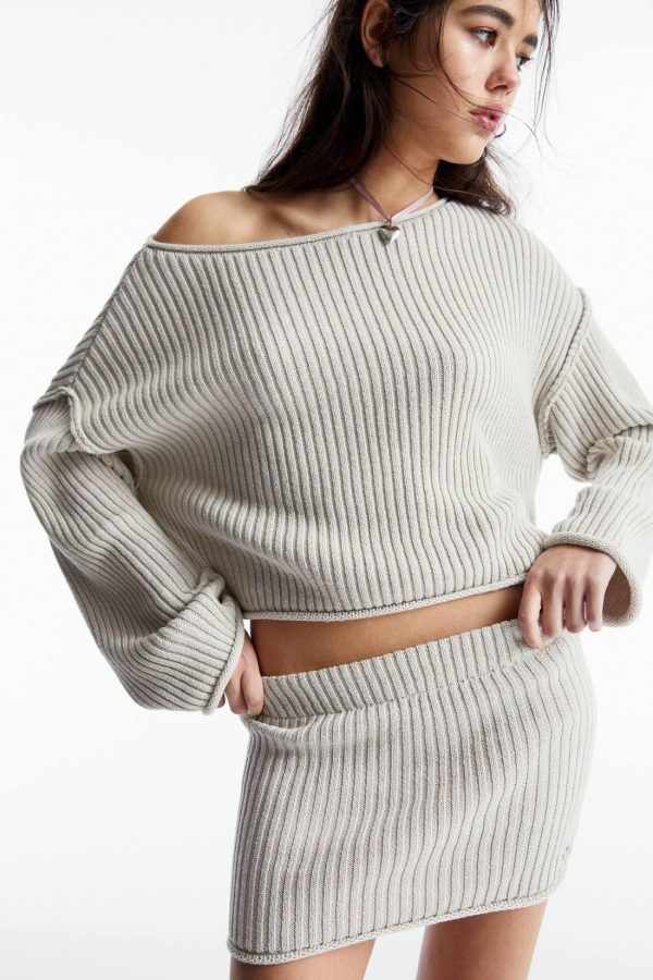 Ribbed Knit Mini Skirt With An Elastic Waistband.