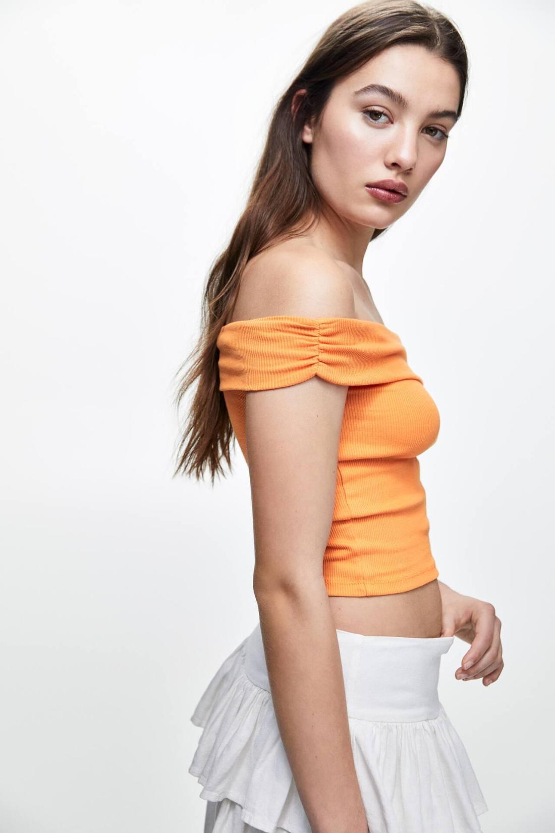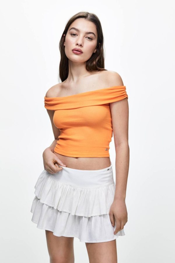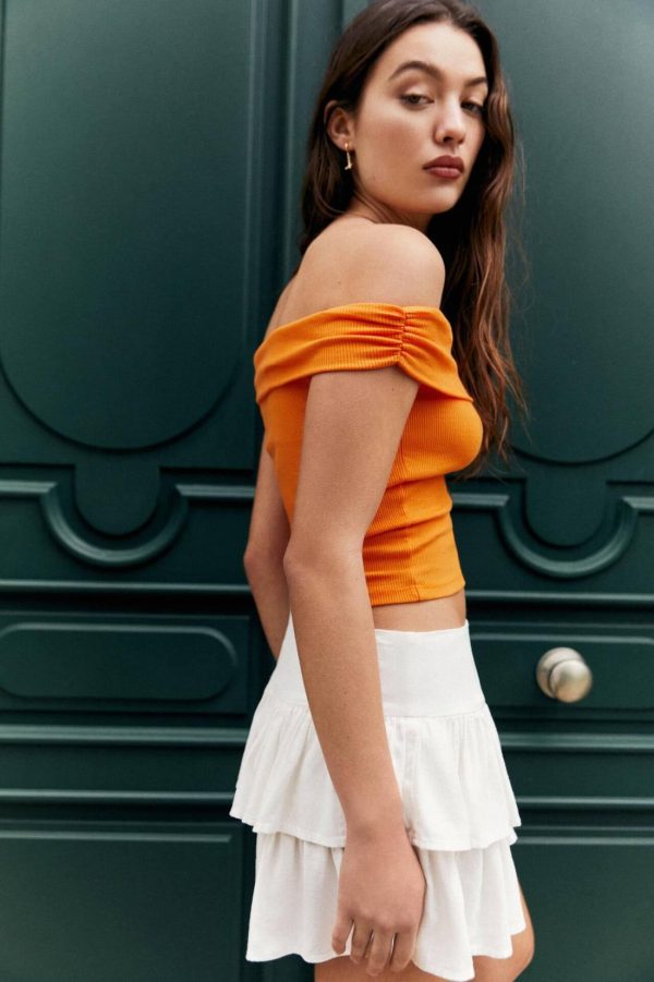 Ribbed Off-The-Shoulder Top Tangerine | Women Off-The-Shoulder