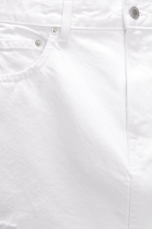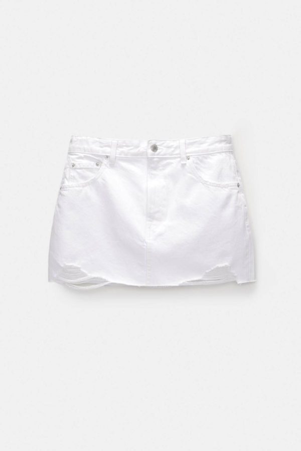 Mid-Rise Denim Mini Skirt With Rip Details, Pockets, Belt Loops And Zipper Fly And Top Button Fastening.