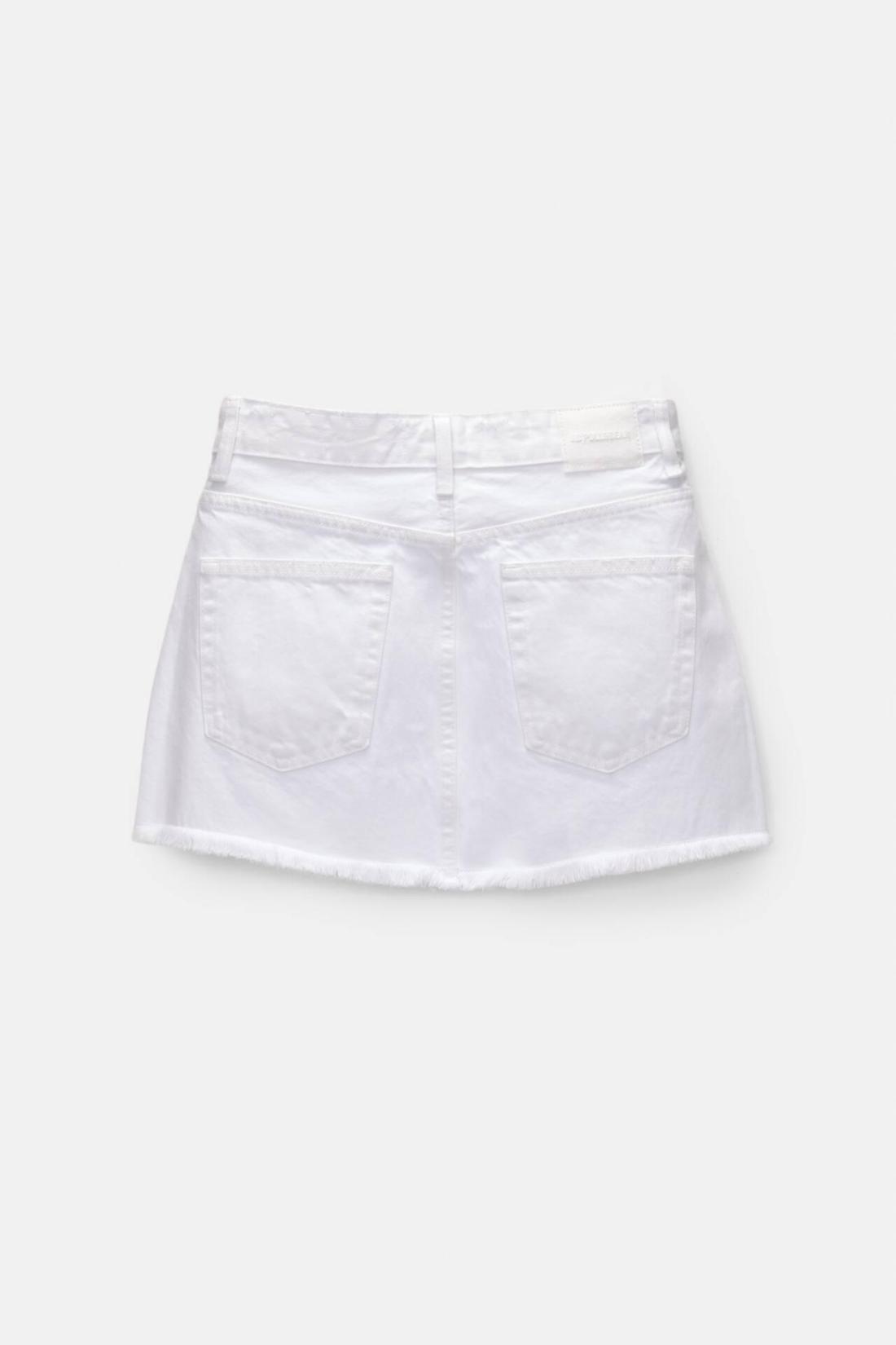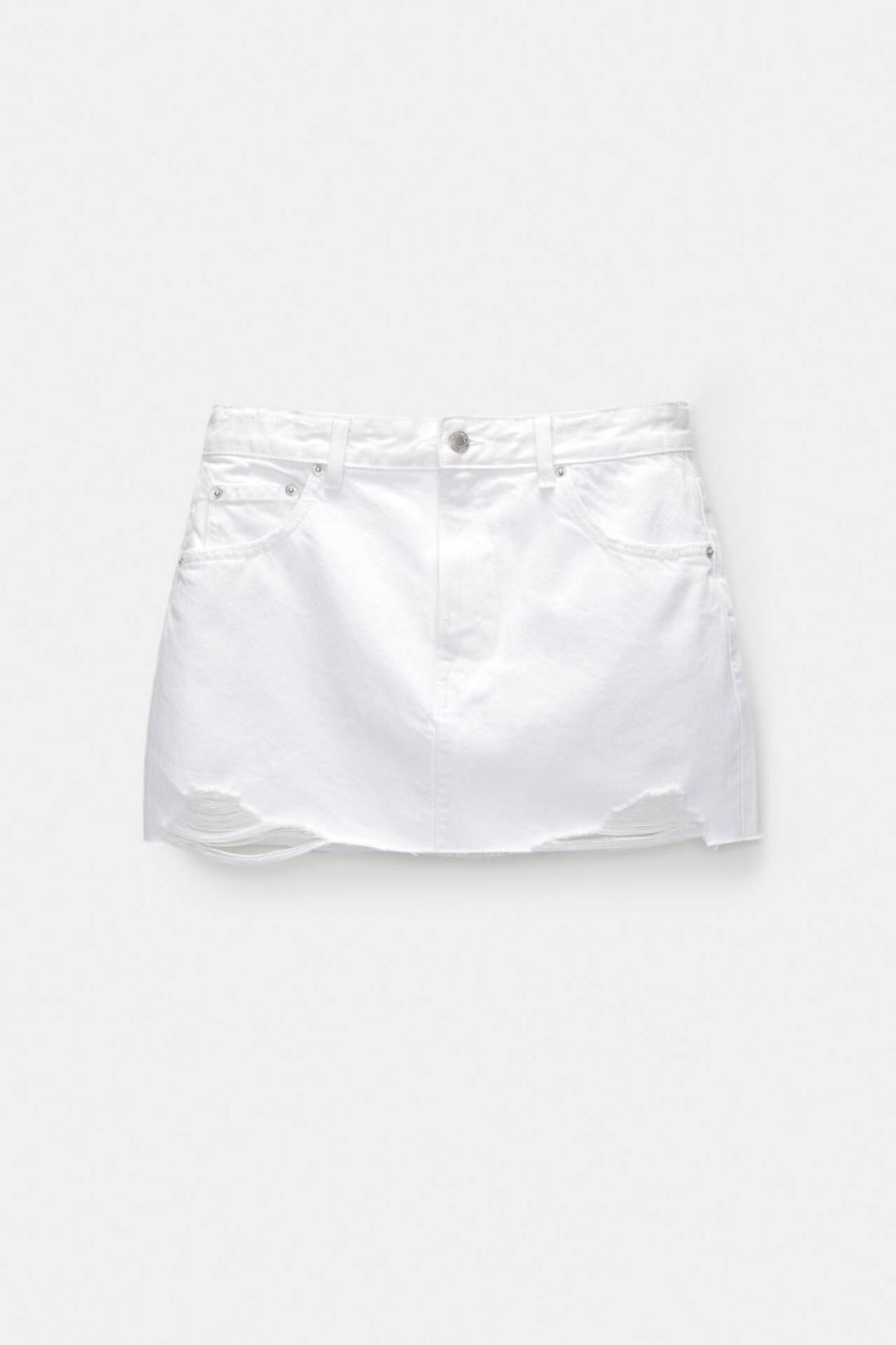 Mid-Rise Denim Mini Skirt With Rip Details, Pockets, Belt Loops And Zipper Fly And Top Button Fastening. Composición