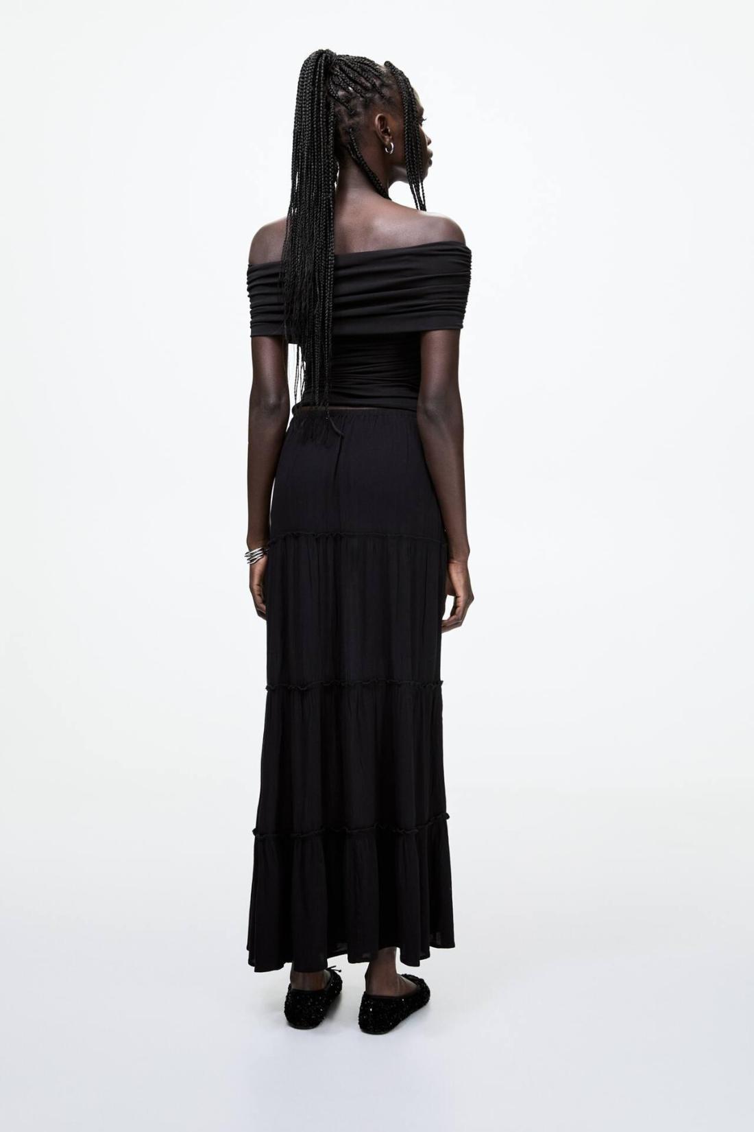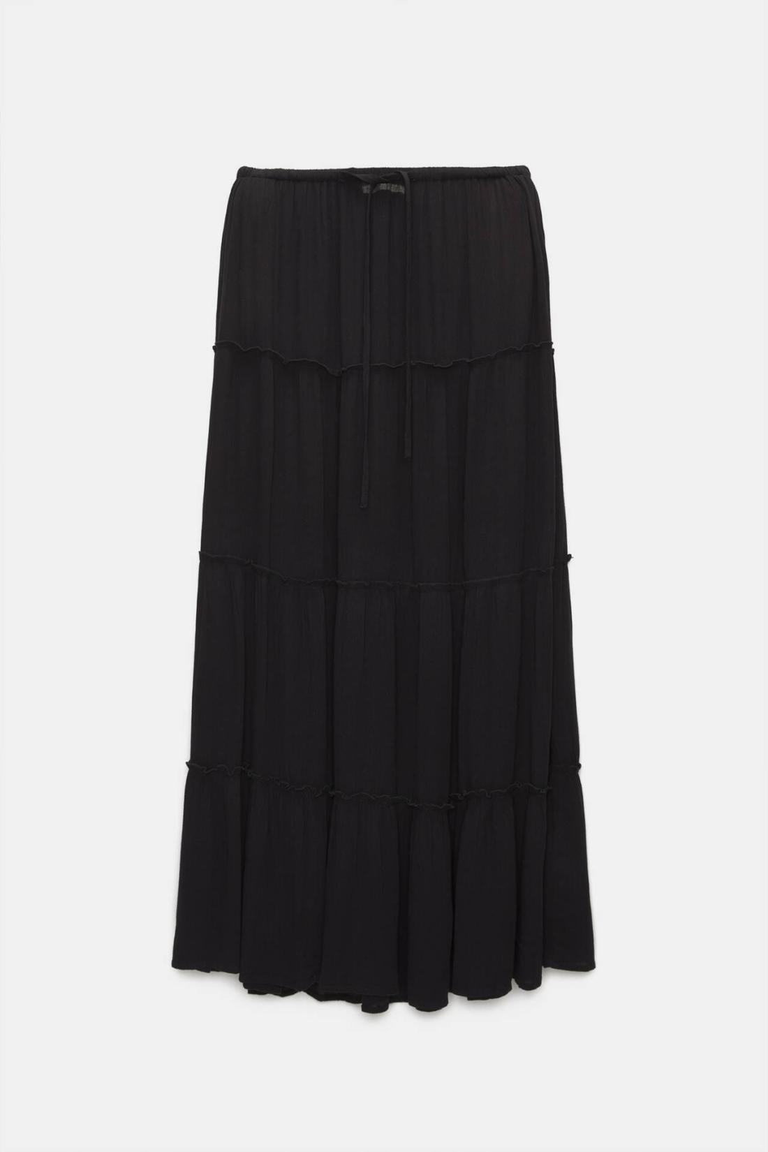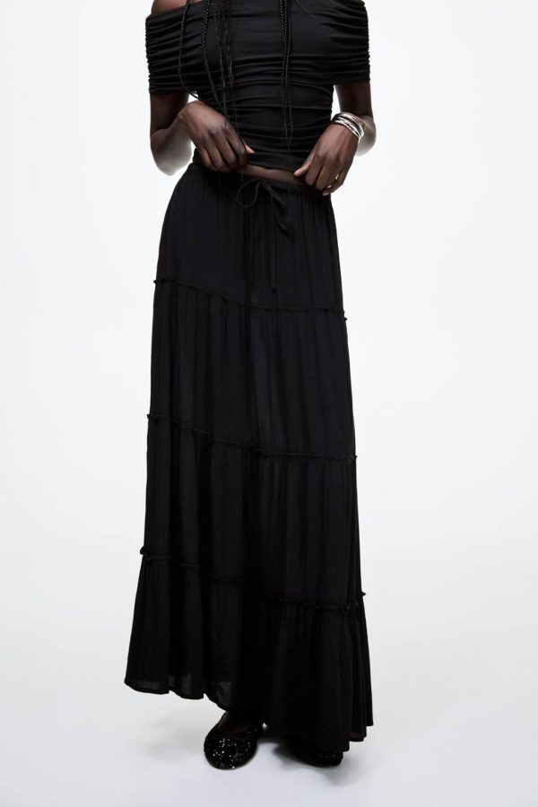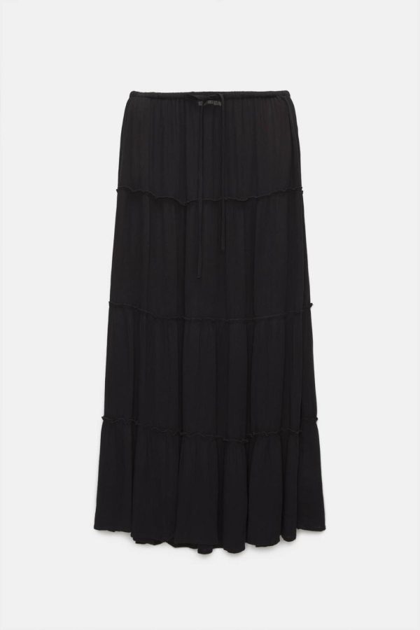 Rustic Midi Skirt With A Tiered Design And Elastic Waistband. Made Of Crepe Fabric.