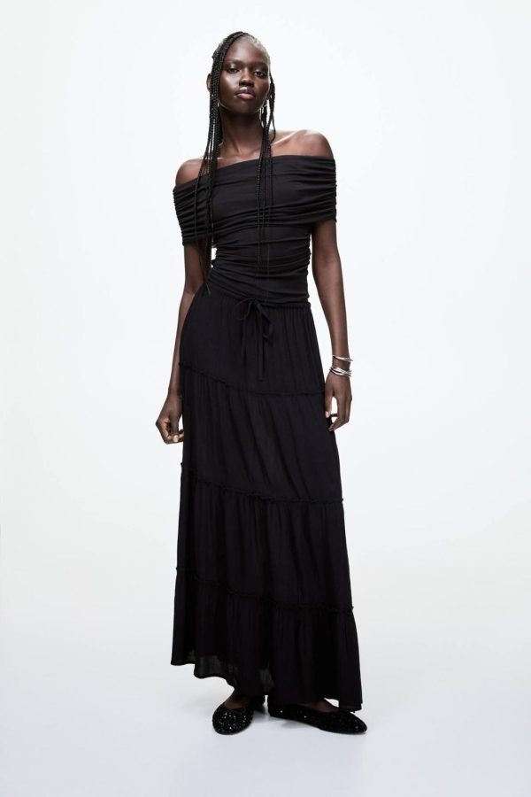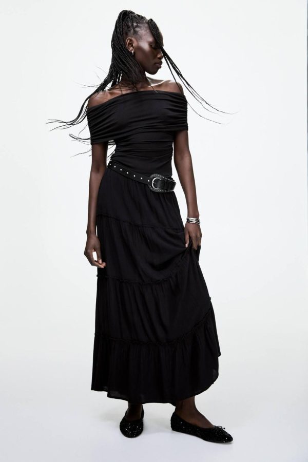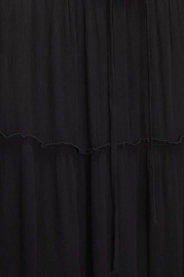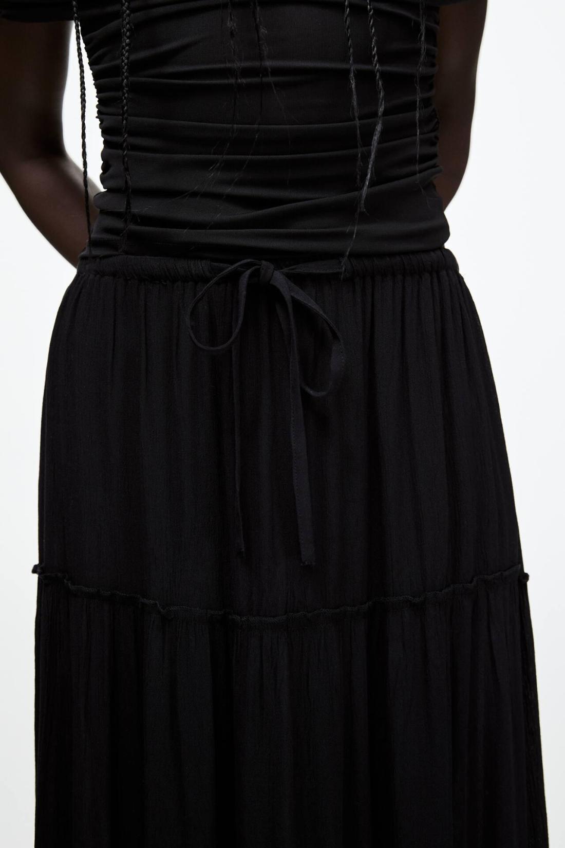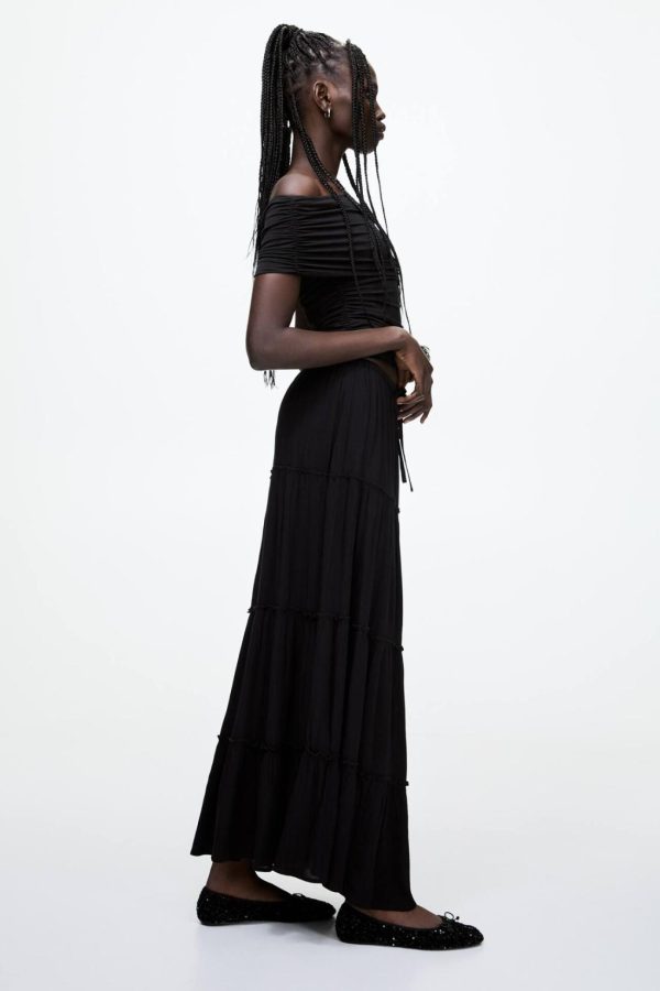 Rustic Midi Skirt With A Tiered Design And Elastic Waistband. Made Of Crepe Fabric.