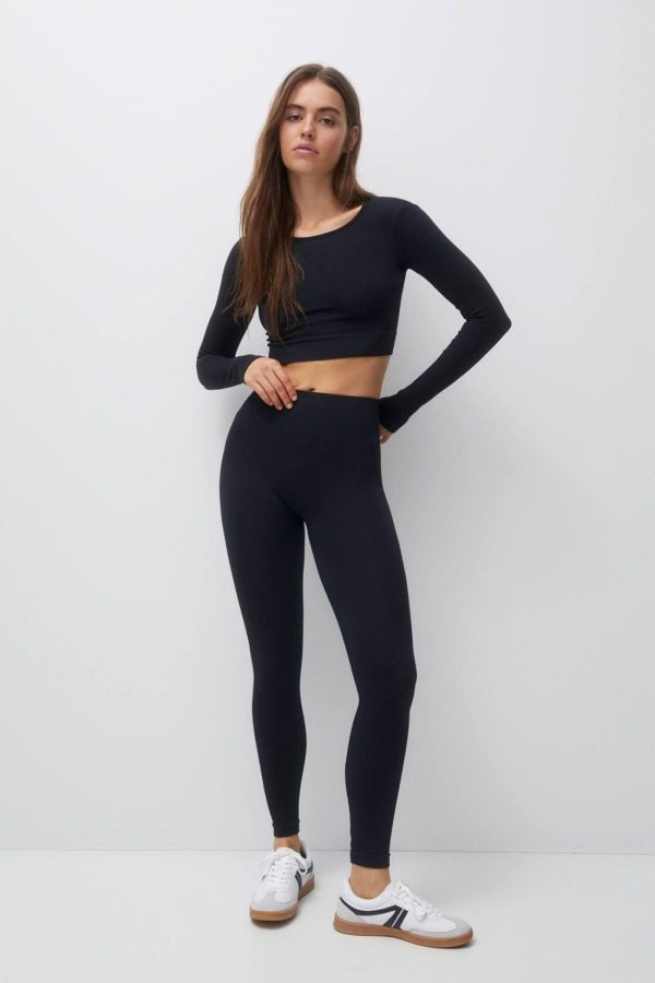 Long Sleeve Cropped T-Shirt Available In A Range Of Colors With A Crew Neck Made From Stretch Fabric That Adapts To The Body.