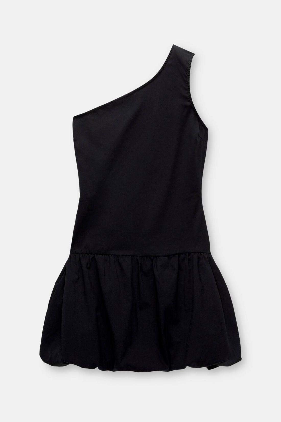 Short Dress With A Balloon Skirt And An Asymmetric Neckline. Made Of Stretch Fabric. Composición