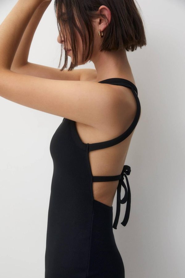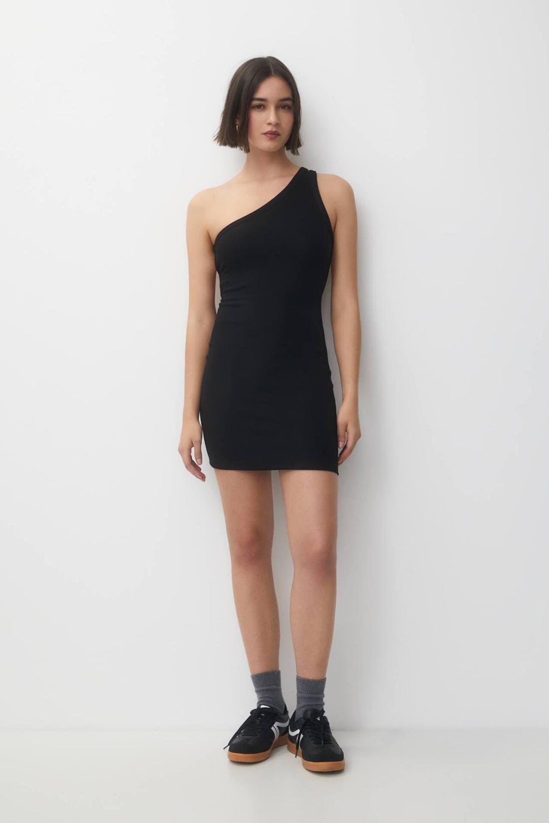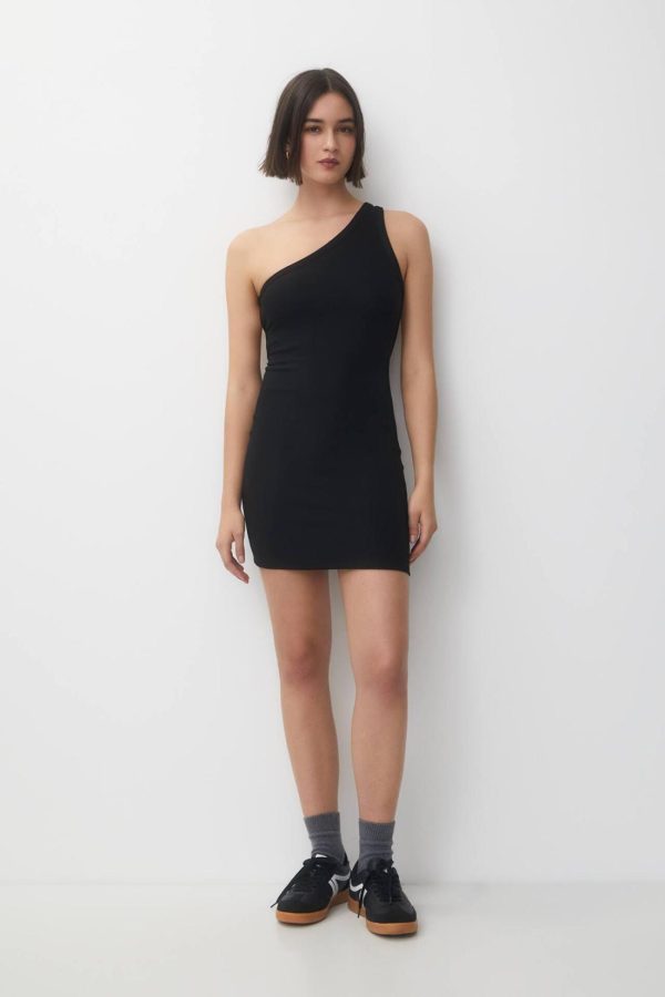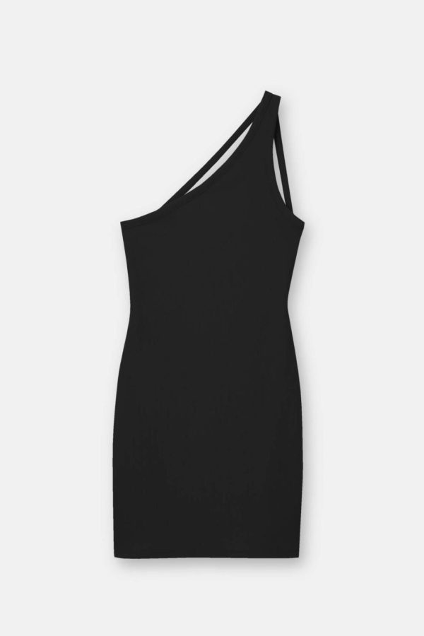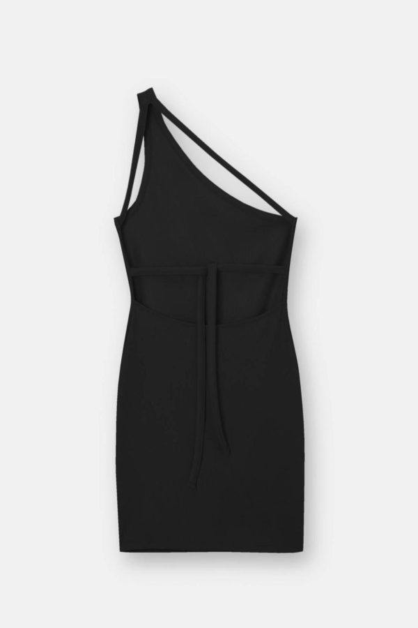 Short Asymmetric Dress With A Lace-Up Back And Fitted Silhouette. Composición
