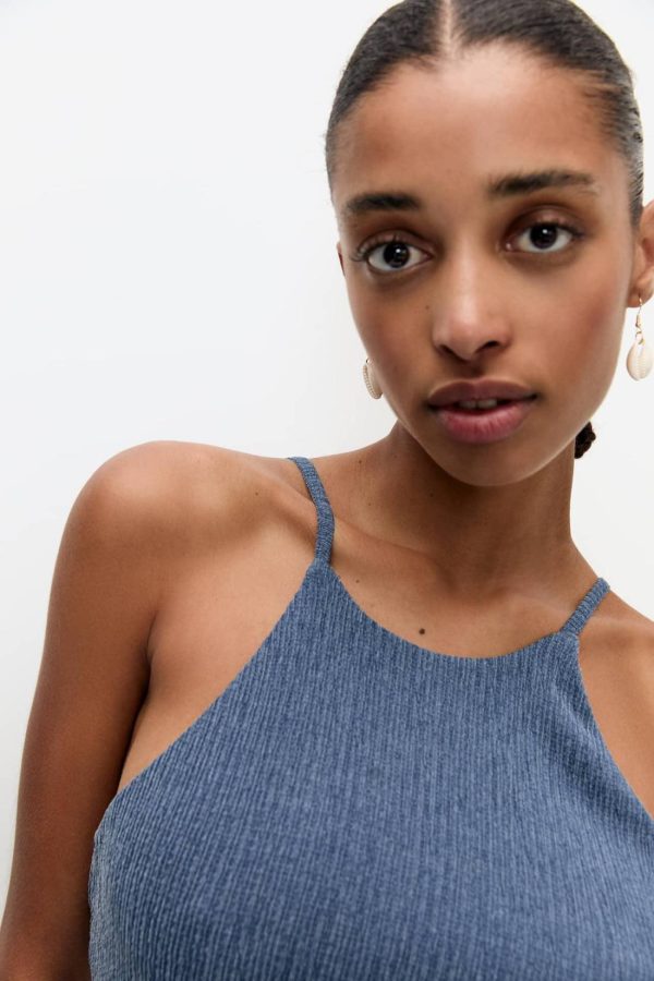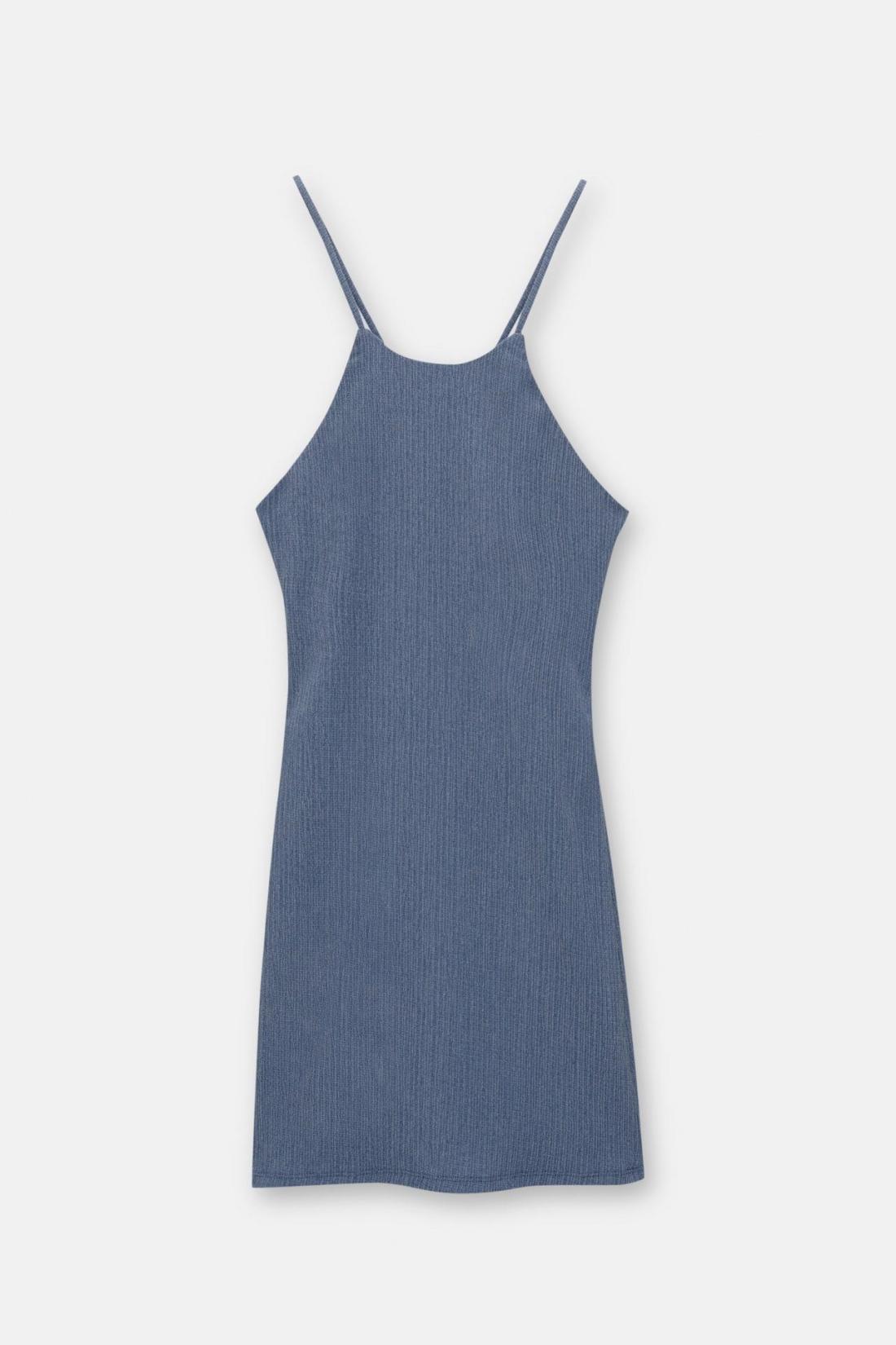Short Strappy Dress With An Open Back. Made Of Wrinkled-Style Stretch Fabric.