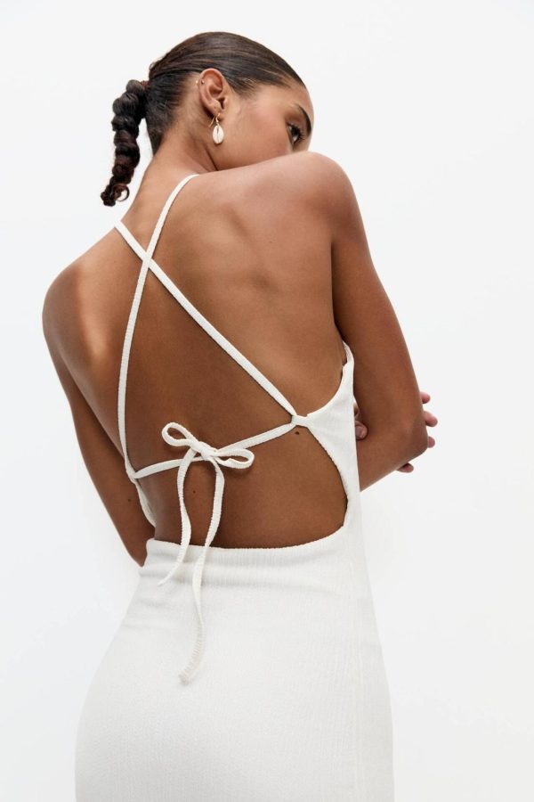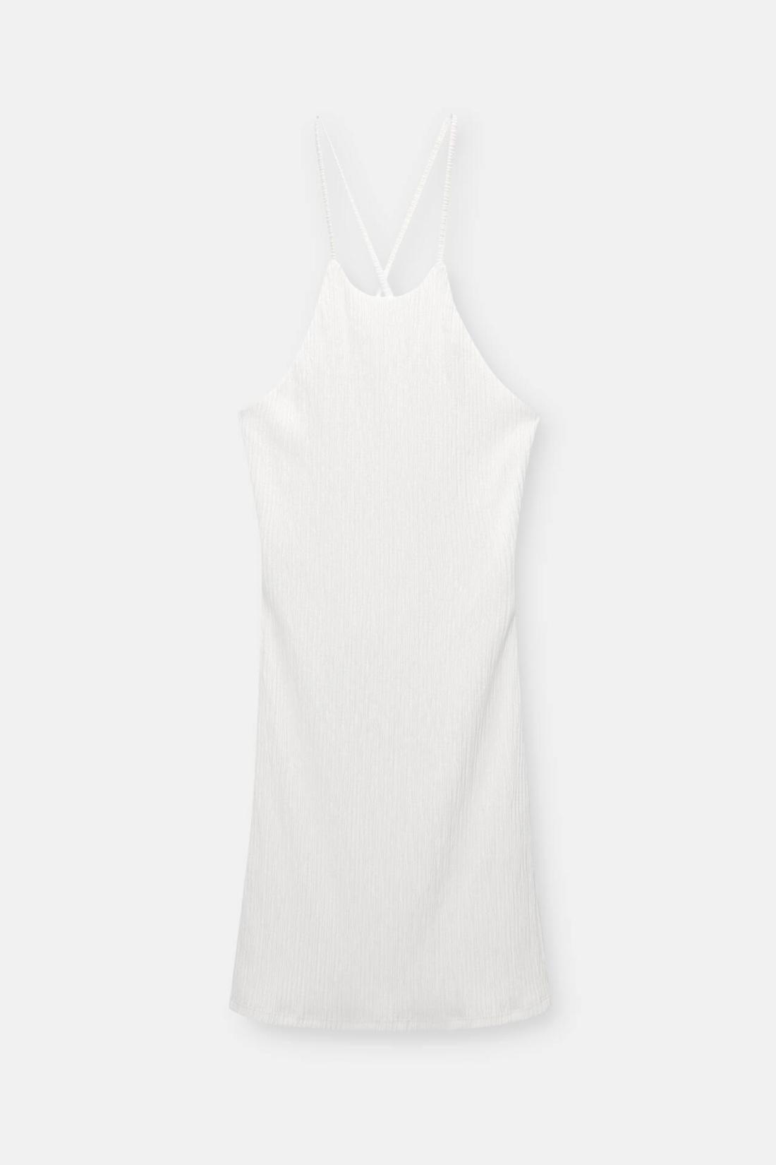 Short Strappy Dress With An Open Back. Made Of Wrinkled-Style Stretch Fabric.