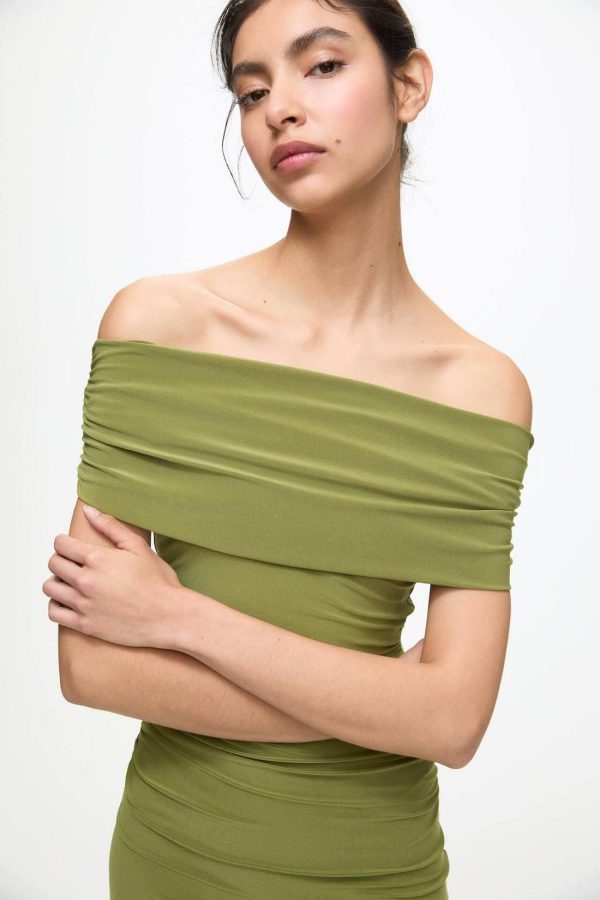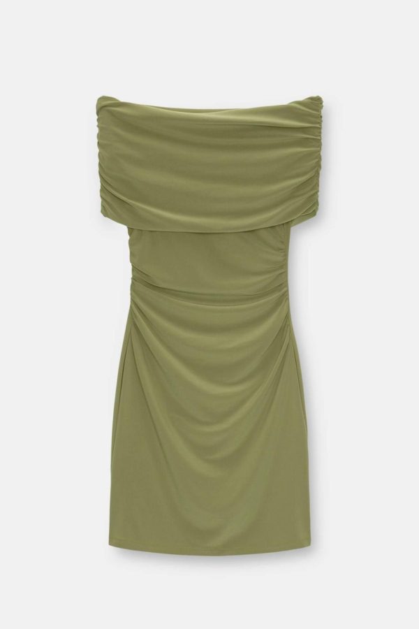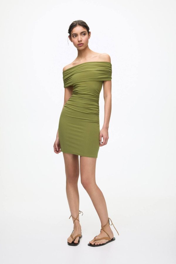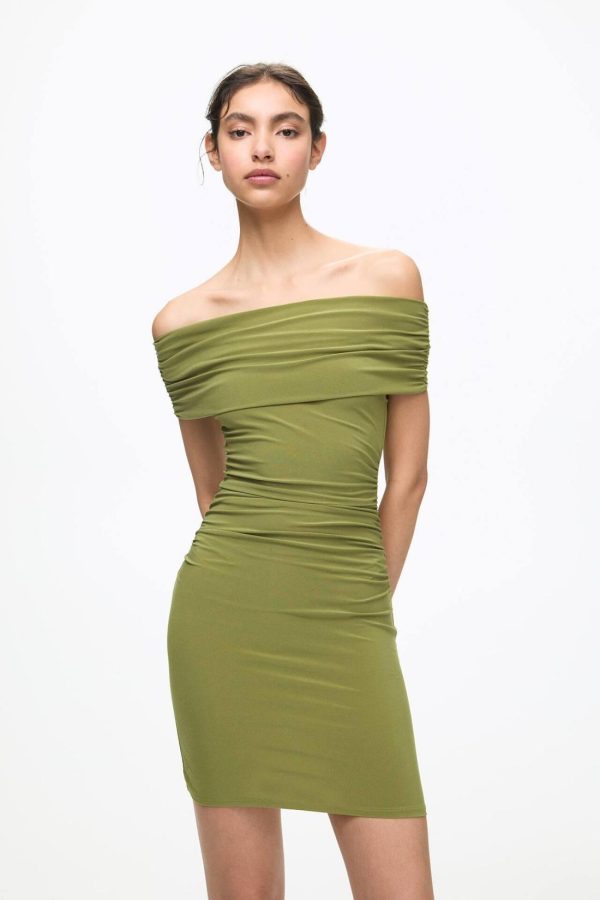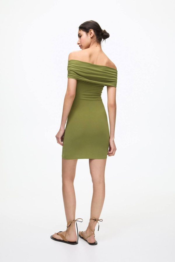 Short Off-The-Shoulder Dress. Made Of Slightly Stretchy Fabric.