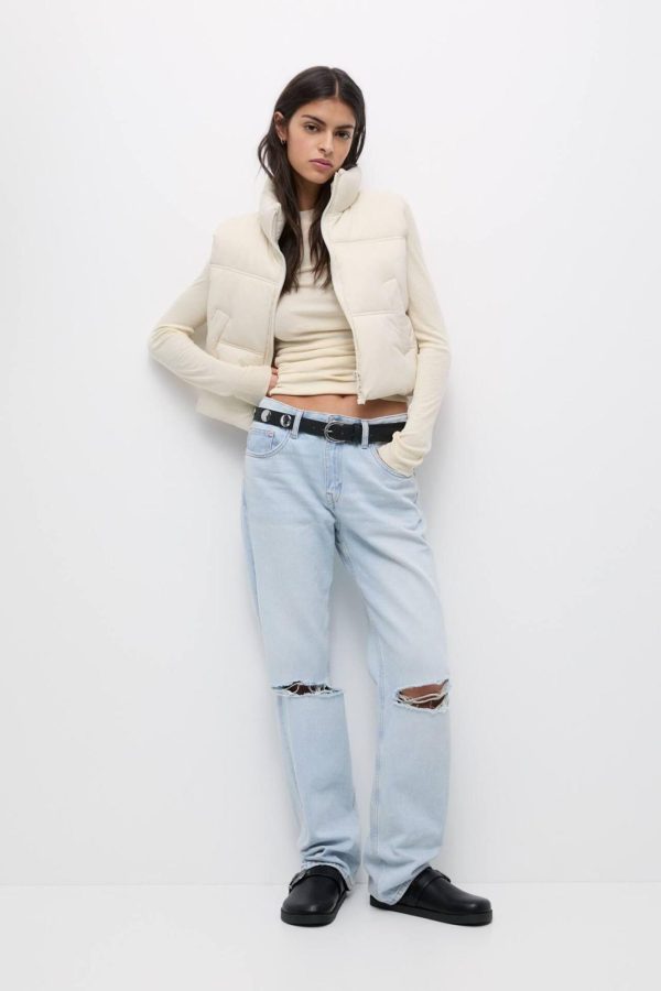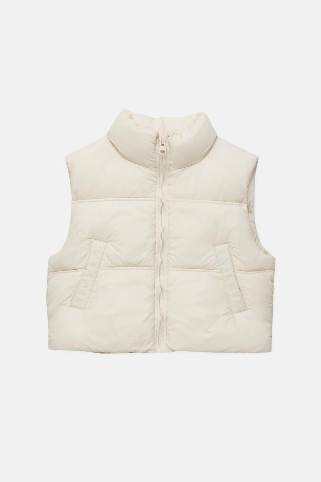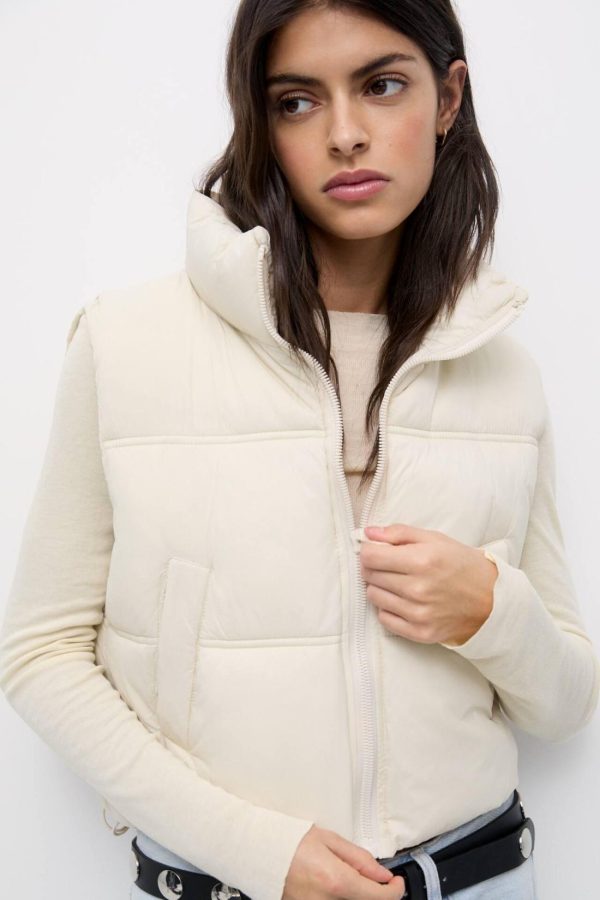 Short Puffer Vest Ecru | Women Puffer Jackets