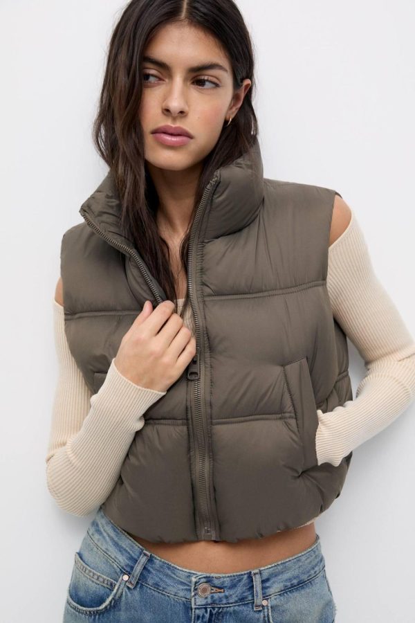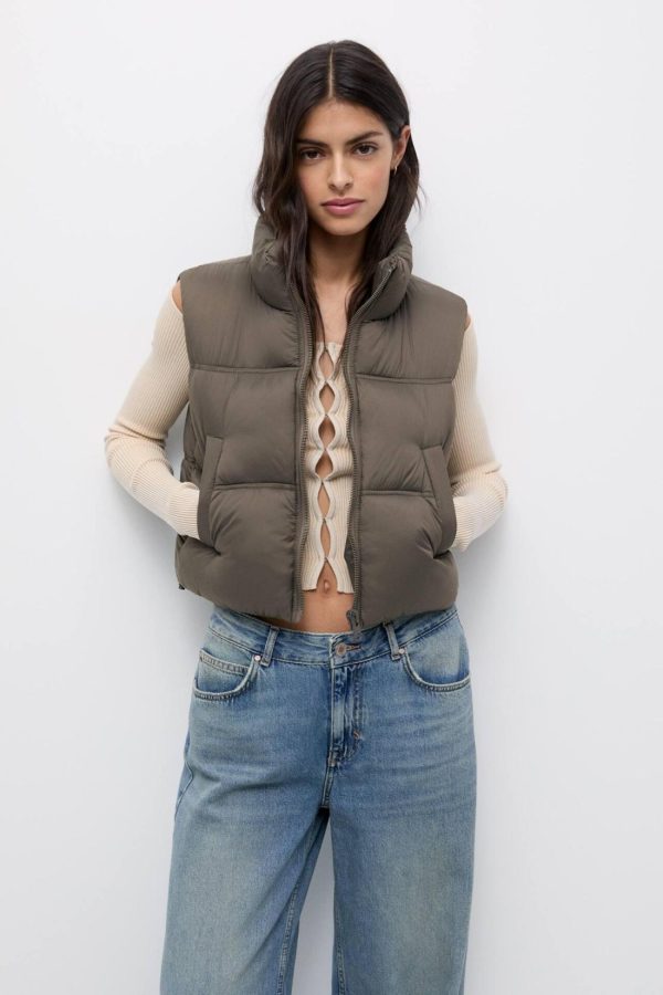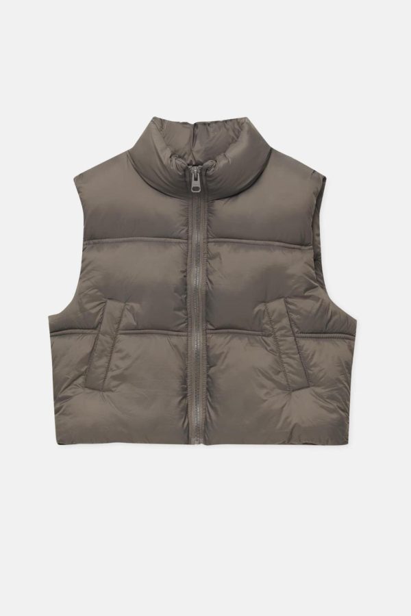 Short Puffer Vest Mole Brown | Women Puffer Jackets
