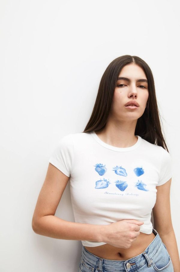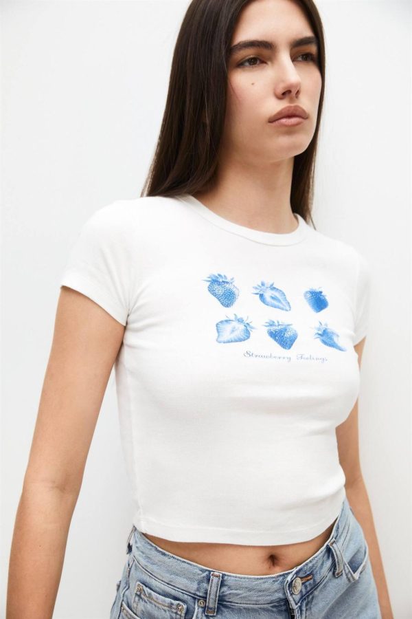 Short Sleeve Round Collar T-Shirt With A Strawberry Print Detail And A Label On The Hem.