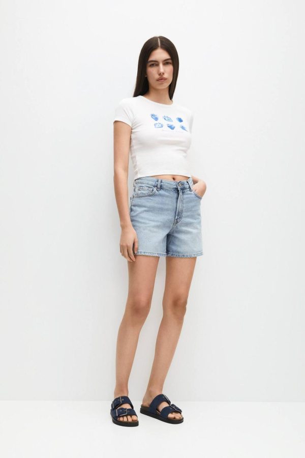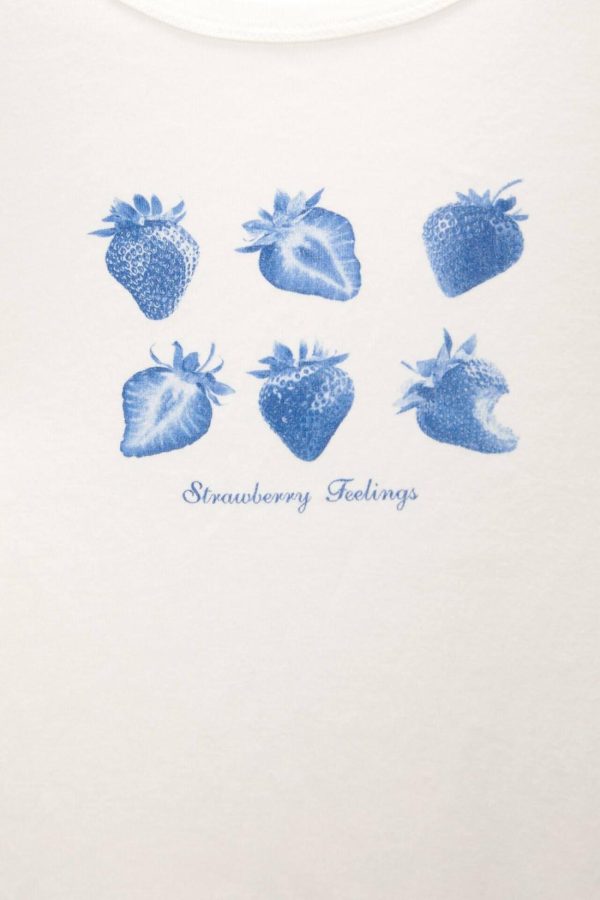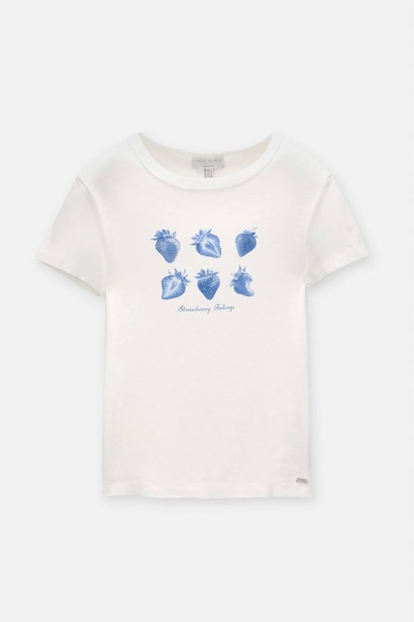 Short Sleeve Round Collar T-Shirt With A Strawberry Print Detail And A Label On The Hem. Composición