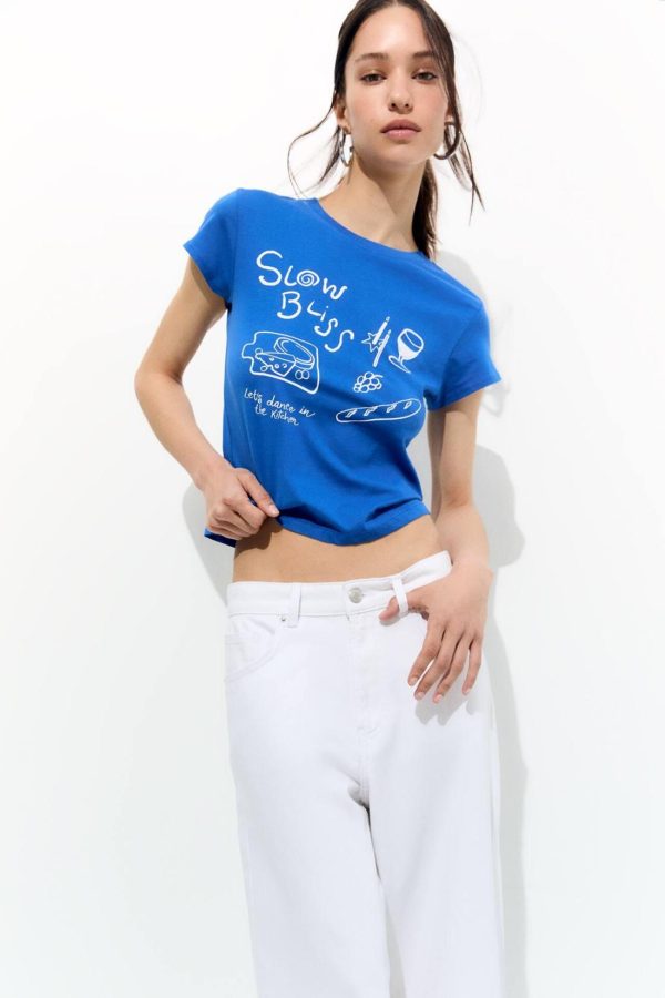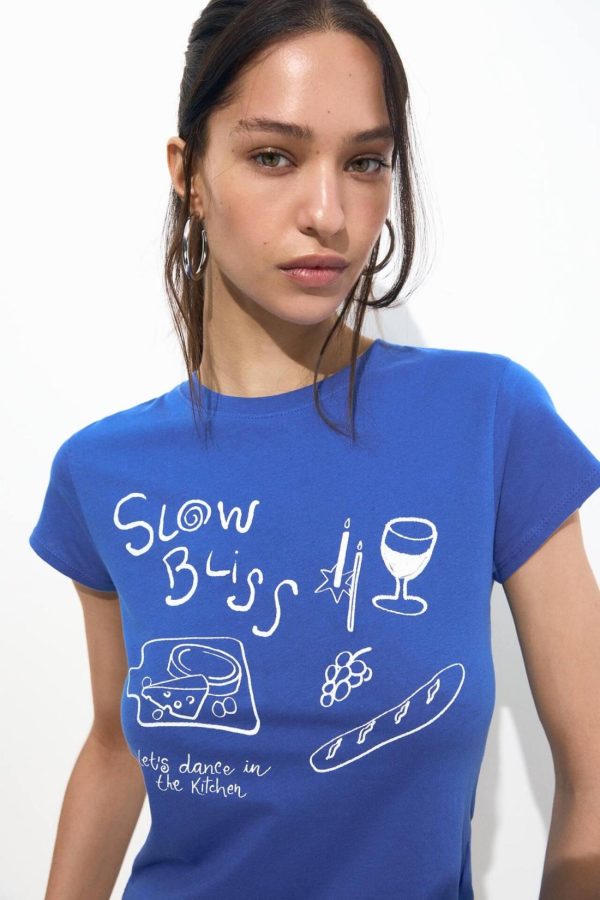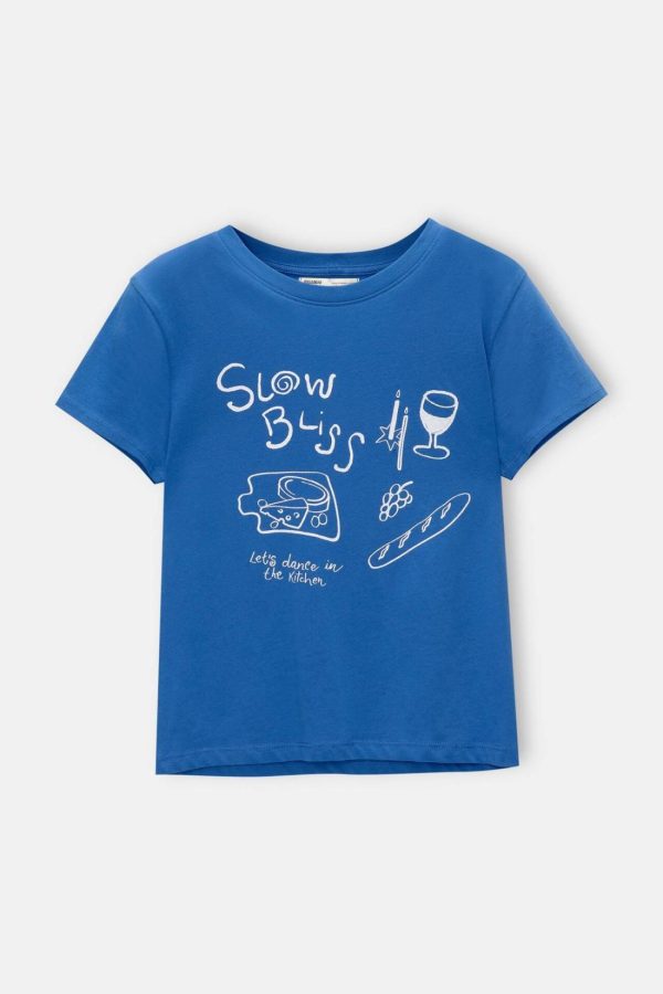 Short Sleeve T-Shirt With Illustration Ink Blue | Women Short Sleeves