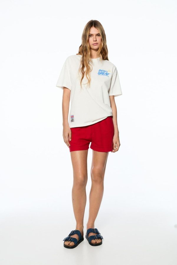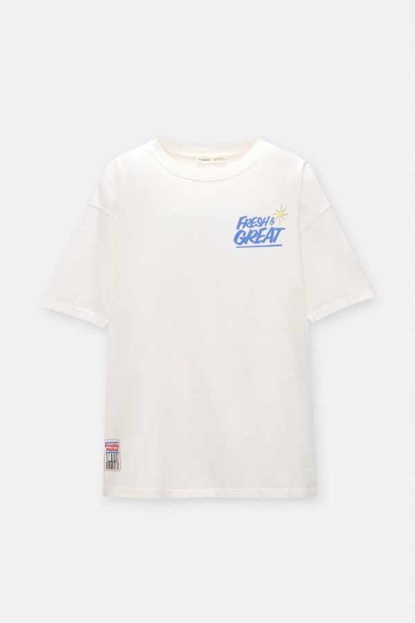 Crew Neck T-Shirt Featuring Short Sleeves, ‘Fresh & Great’ Graphic Detail And Embroidery. Made Of Cotton. Composición