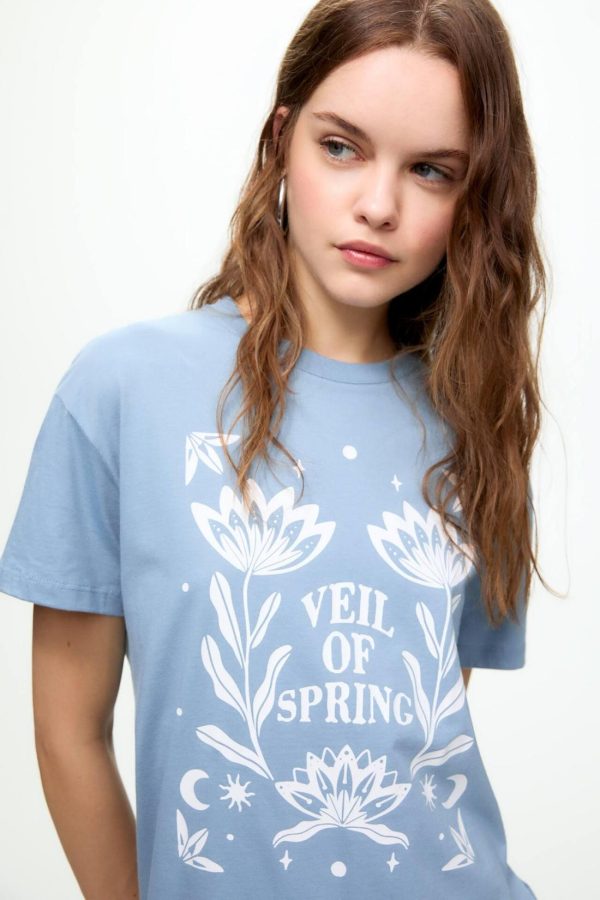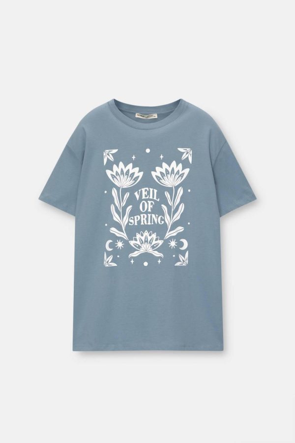 Short Sleeve T-Shirt With A Crew Neck And A Floral Graphic And Slogan Detail. Made Of 100% Cotton.