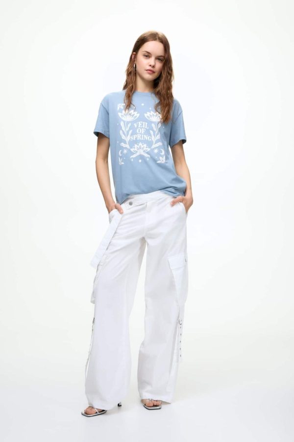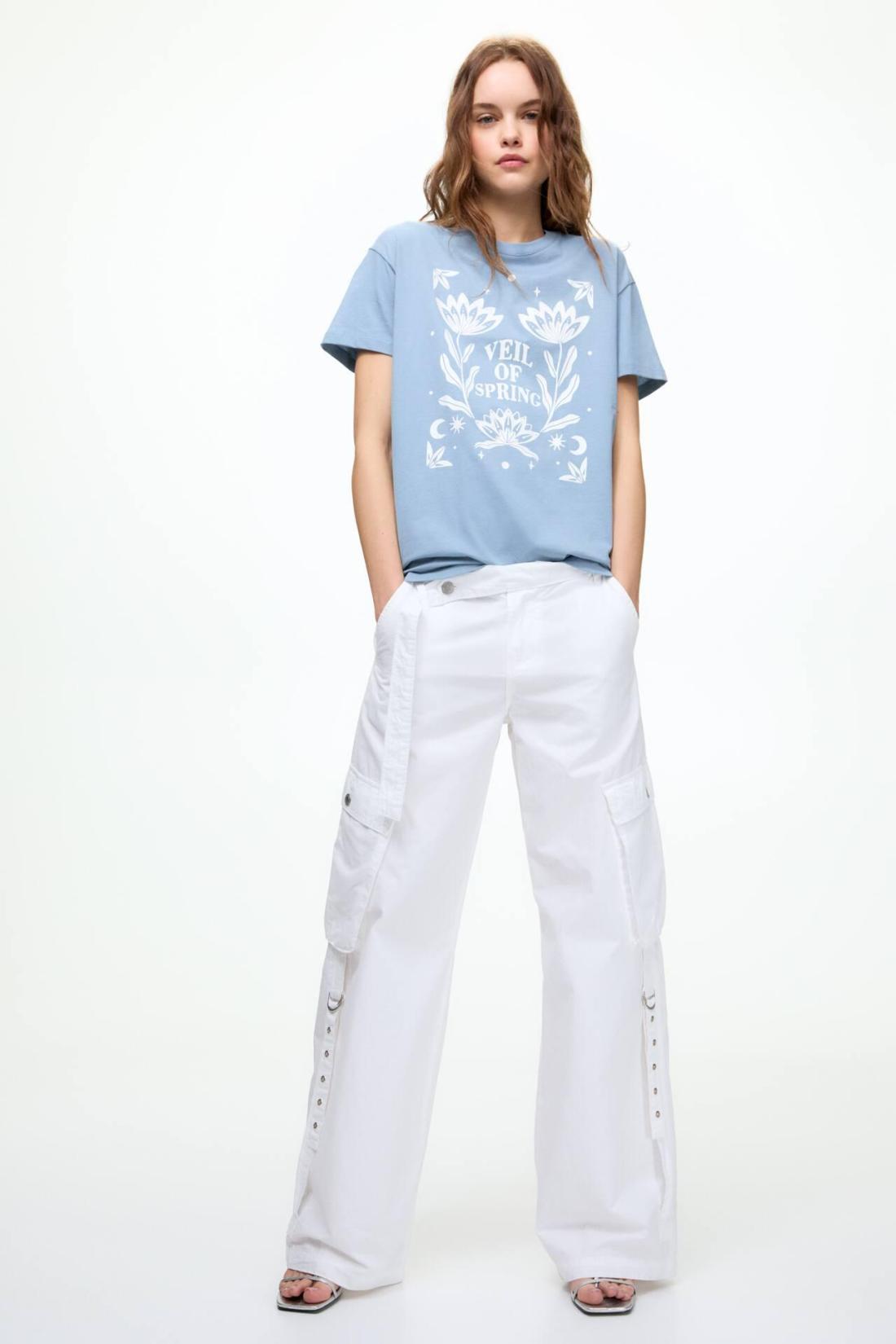 Short Sleeve T-Shirt With A Crew Neck And A Floral Graphic And Slogan Detail. Made Of 100% Cotton. Composición