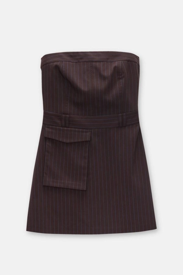 Be the first to review “Short Strapless Pinstripe Dress Brown | Women Short”