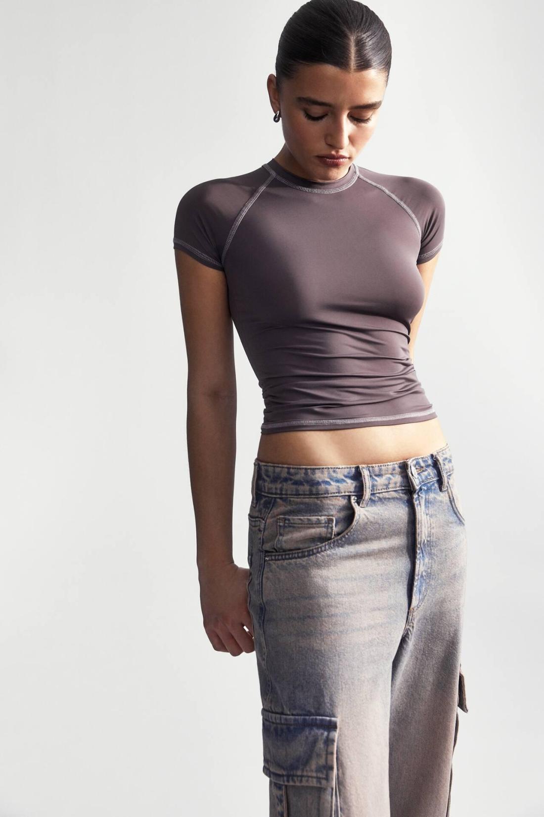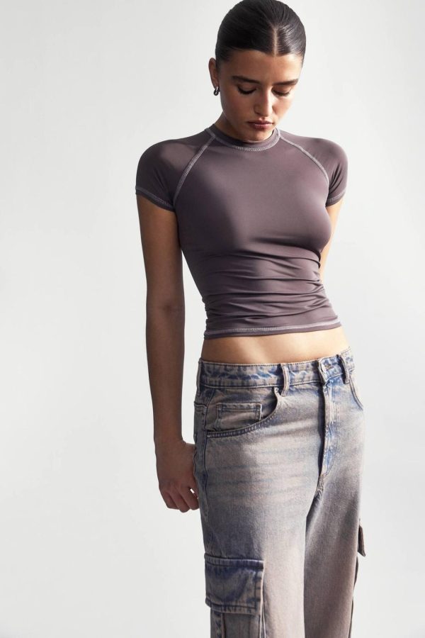 Slim-Fit T-Shirt With Long Raglan Sleeves, A Crew Neckline And Seam Details. Made Of Slightly Stretchy Polyamide Fabric.