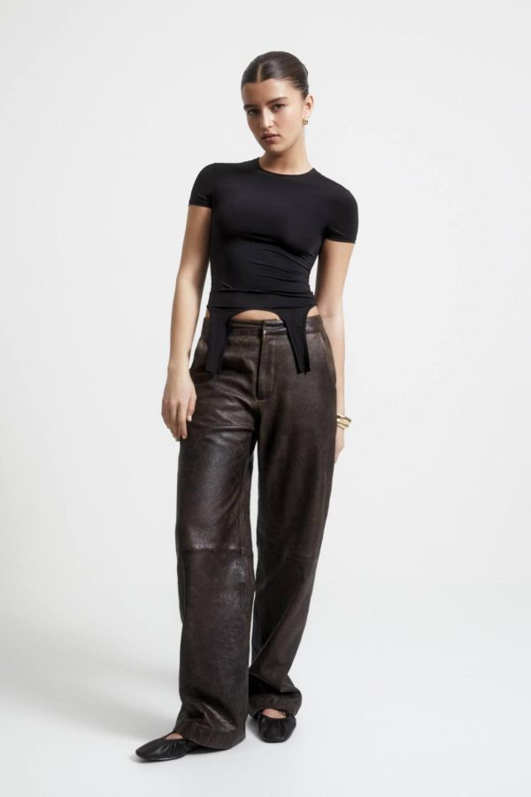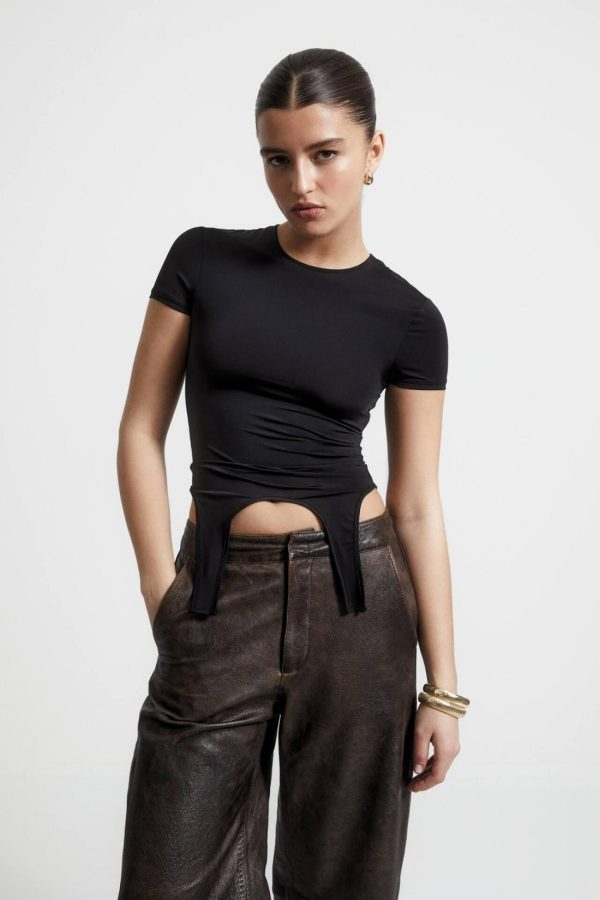 Slim Fit Short Sleeve T-Shirt With A Crew Neckline And Ties At The Hem. Made Of Slightly Stretchy Polyamide Fabric.